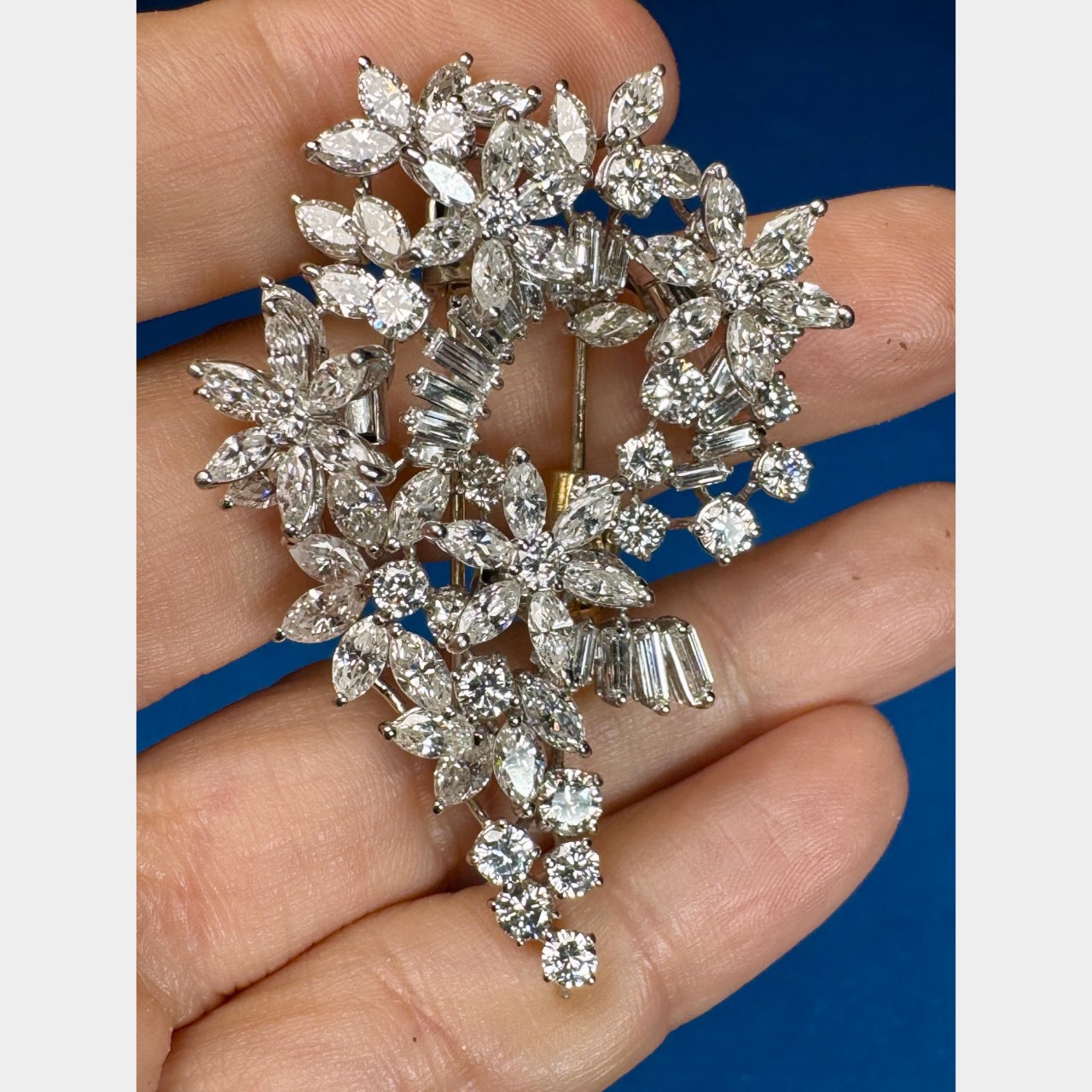 1960’s Platinum 15.00 Ct. Diamond En Tremblant BroochWeighing 28.5 grams