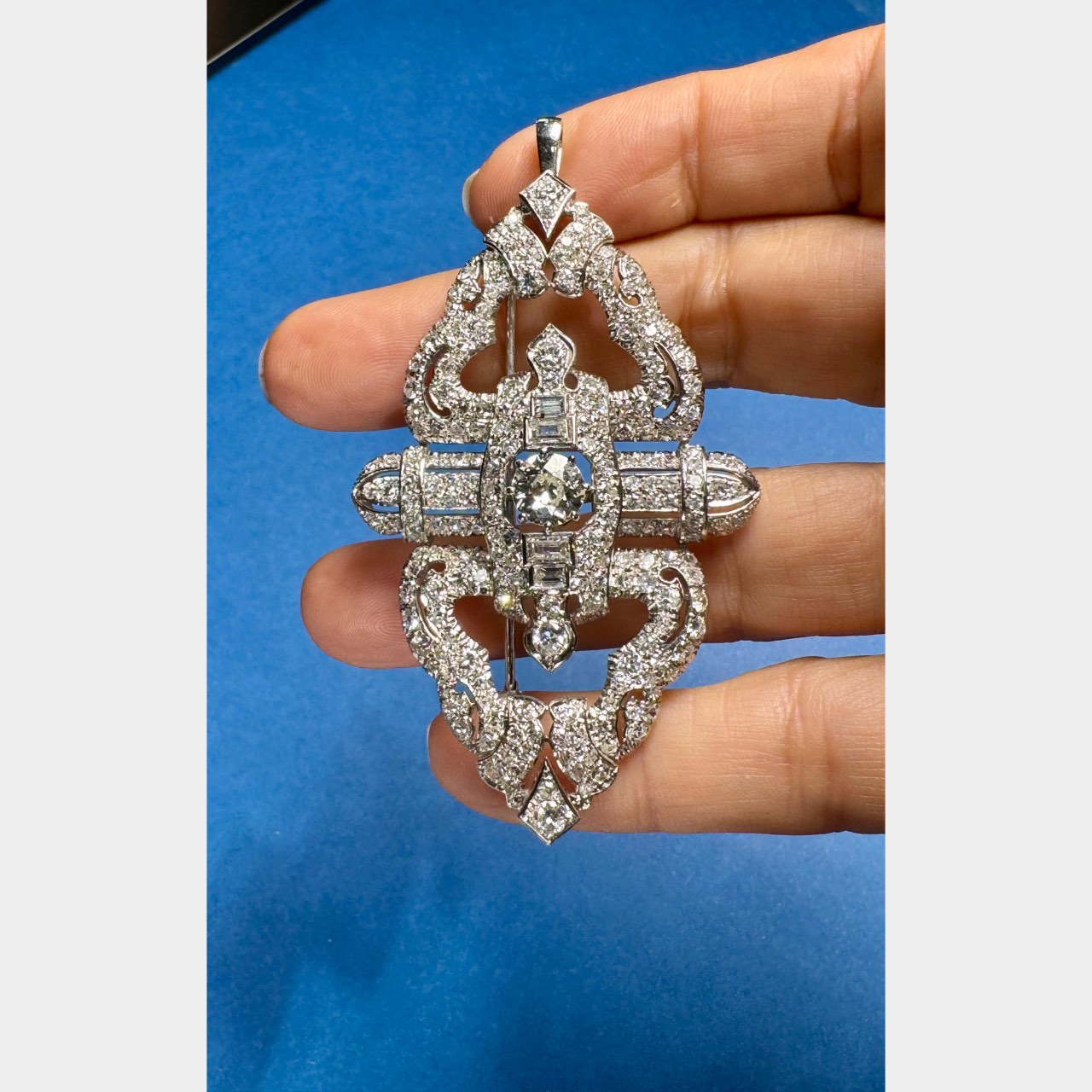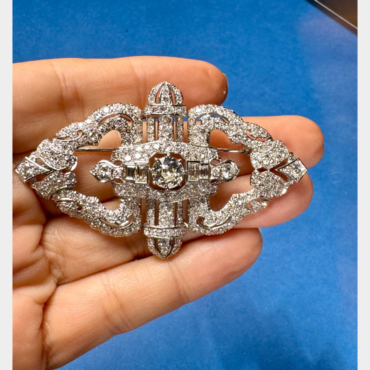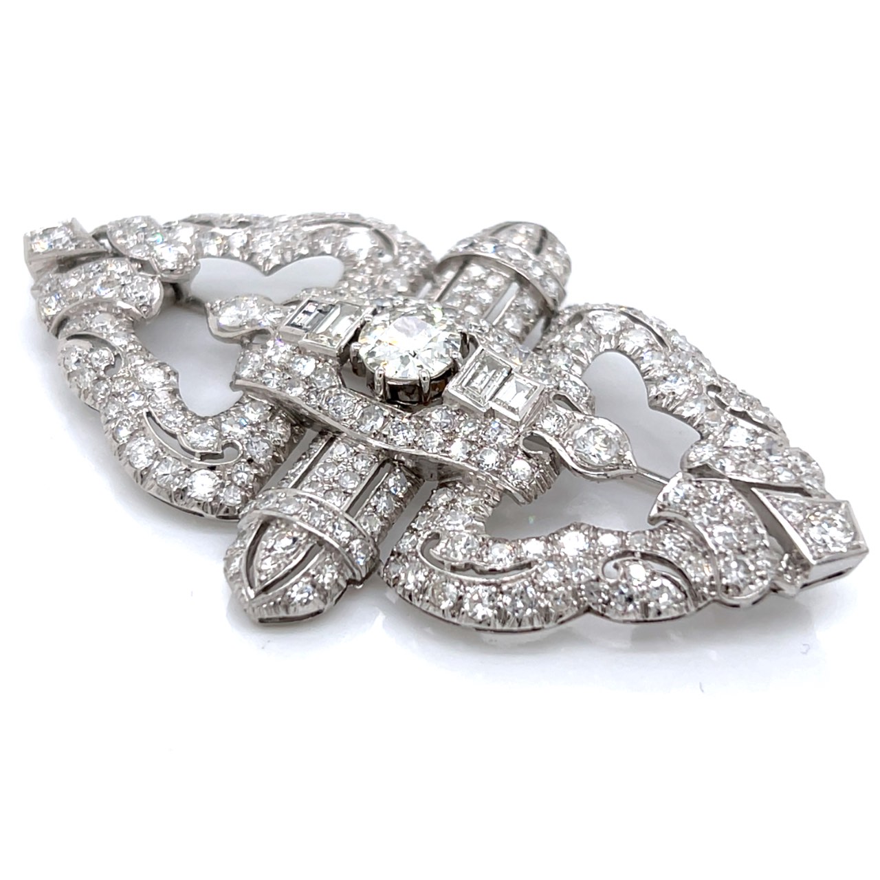 Art Deco Platinum 12.65 Ct. Diamond Brooch