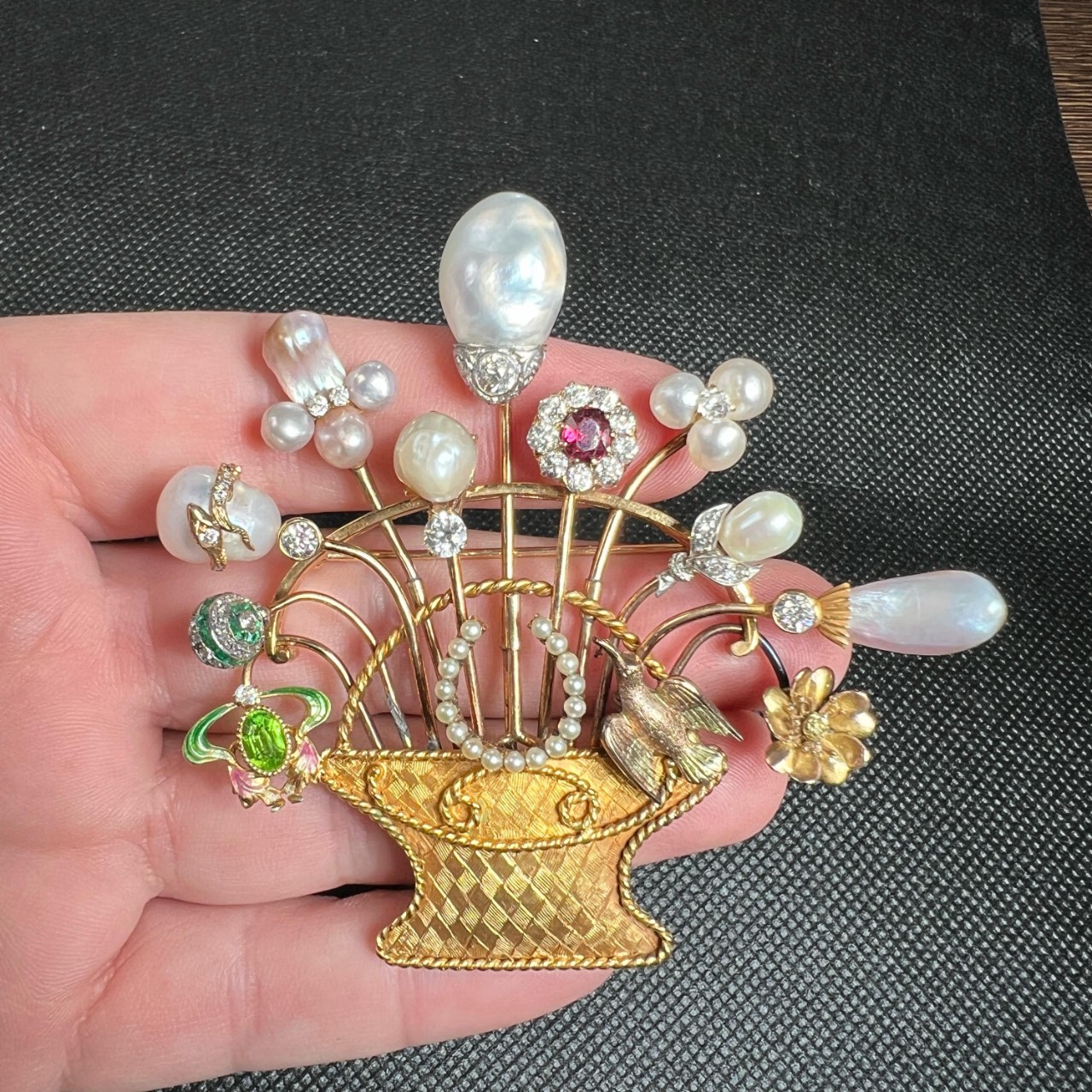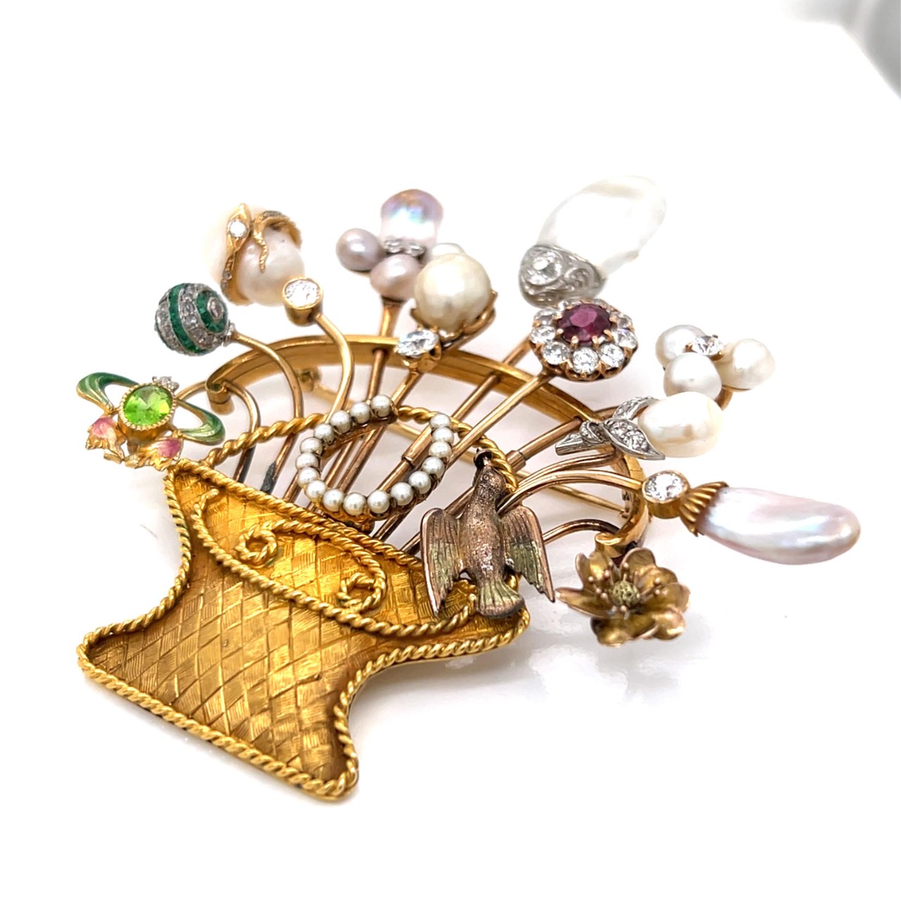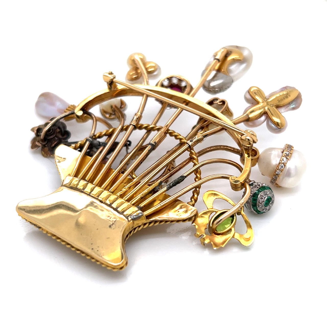 Antique 18K & 14K Yellow Gold Natural Pearl and Diamond BroochWeighing 39.9 grams