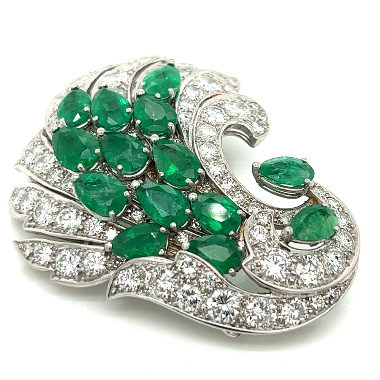 Platinum Emerald & Diamond BroochWeighing 26.8 grams