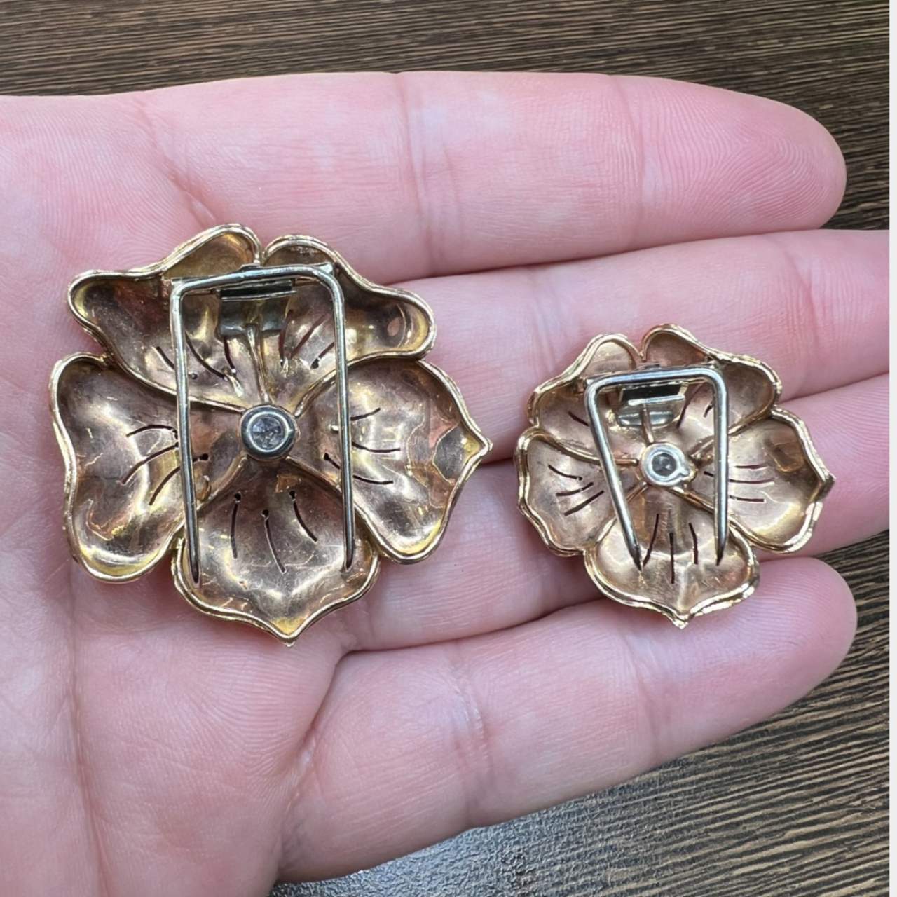 Retro 14K & Platinum Diamond & Ruby Brooch Set