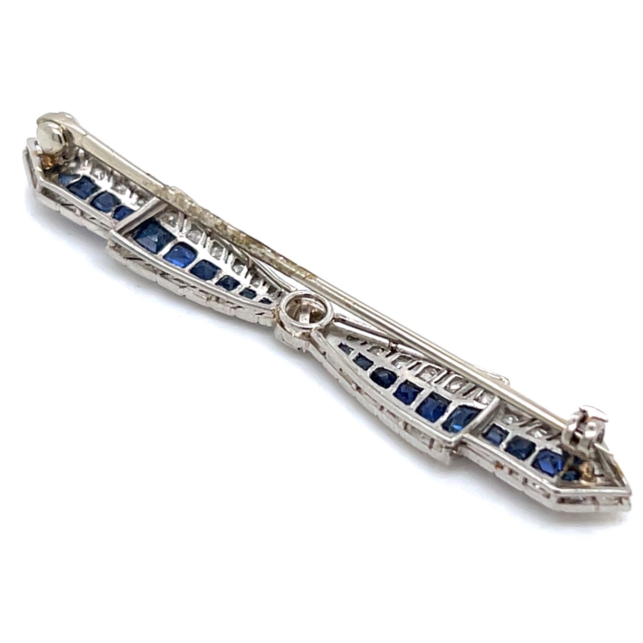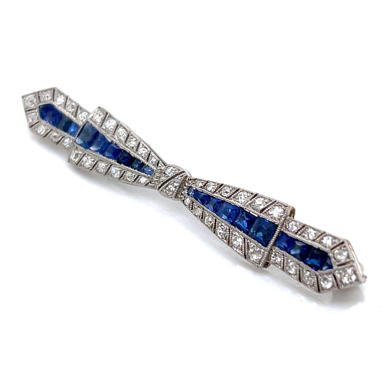 Art Deco Platinum Burma Sapphire & Diamond BroochWeighing 4.8 grams