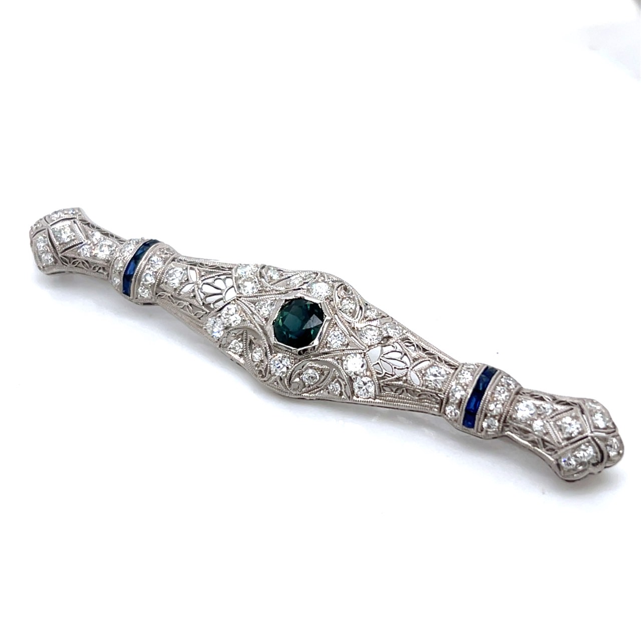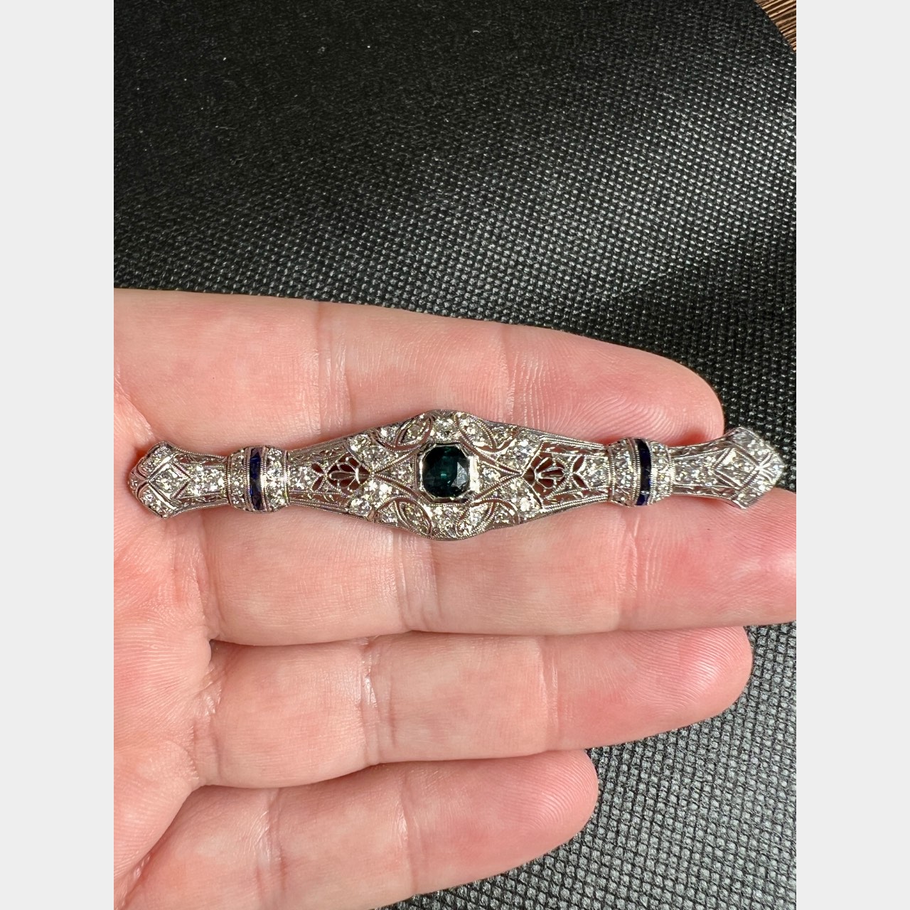 Art Deco Platinum Sapphire & Diamond BroochWeighing 8.4 grams