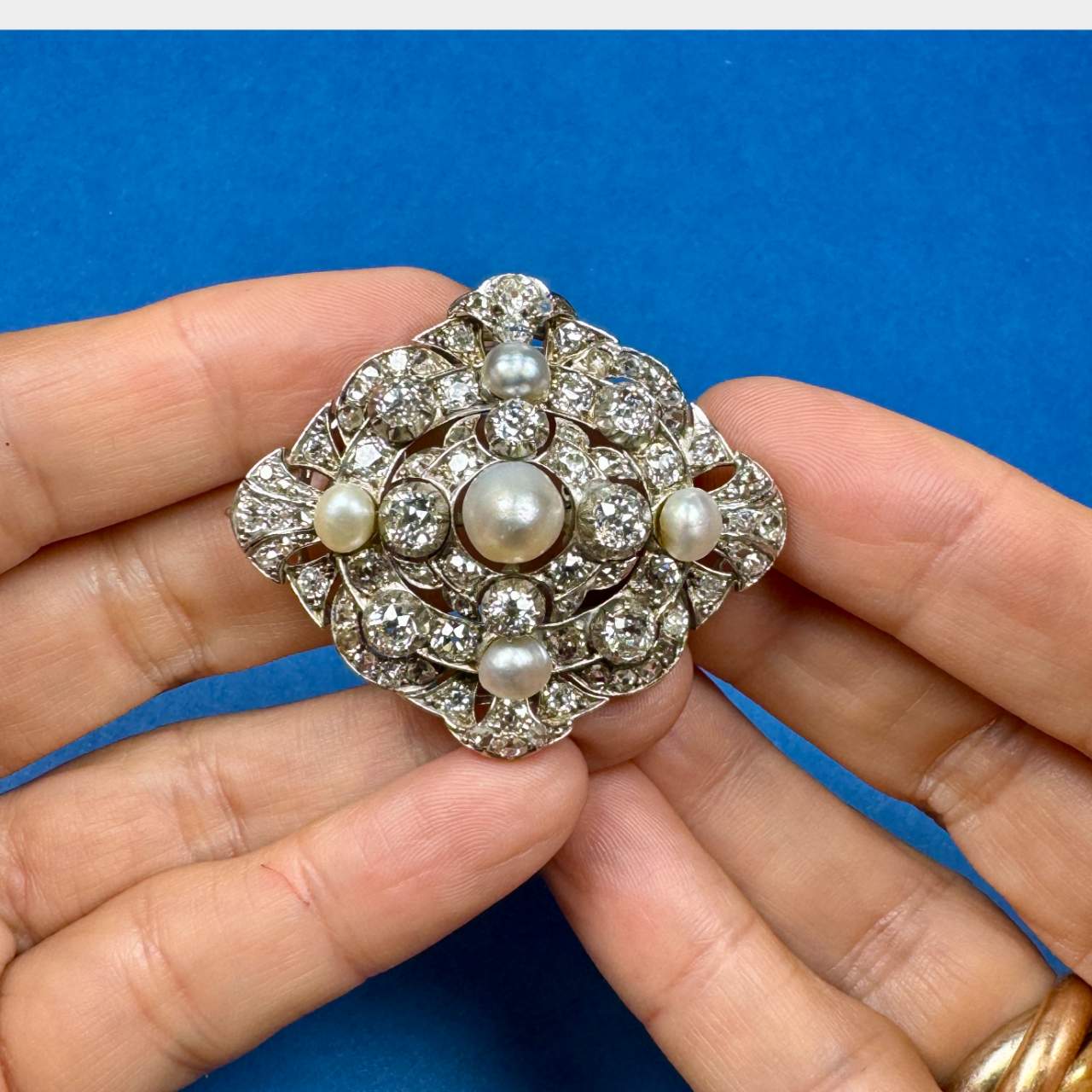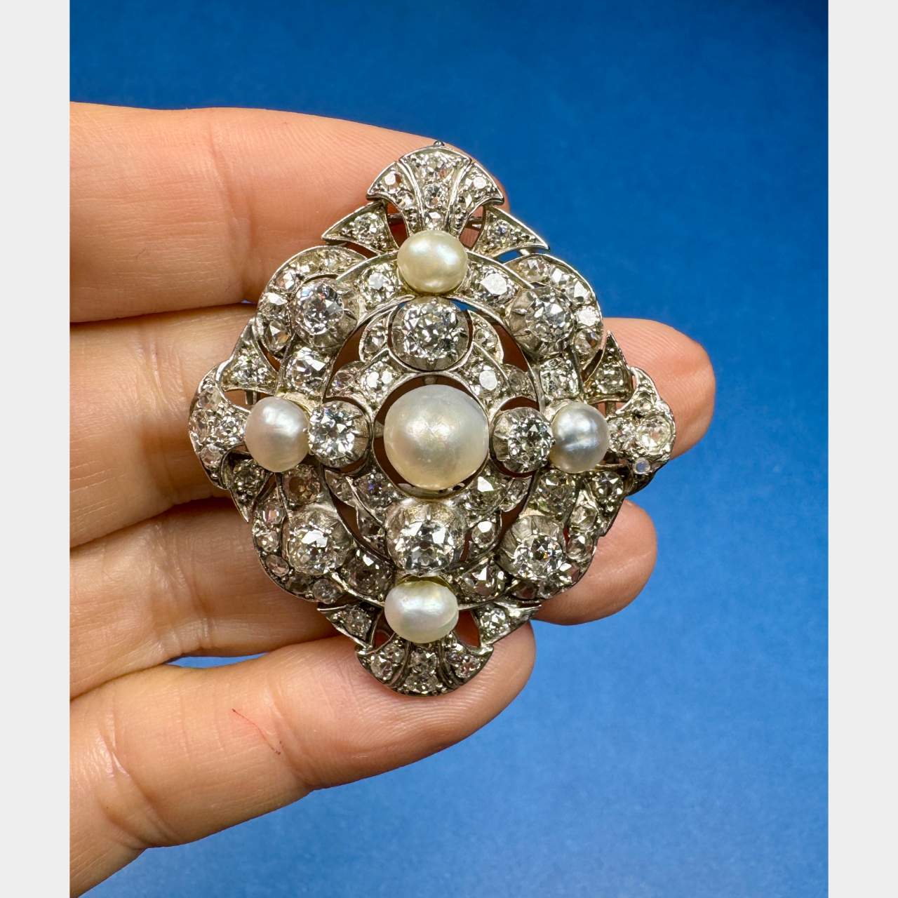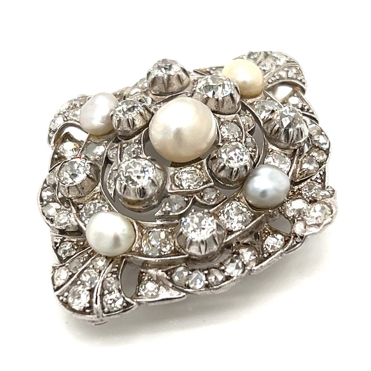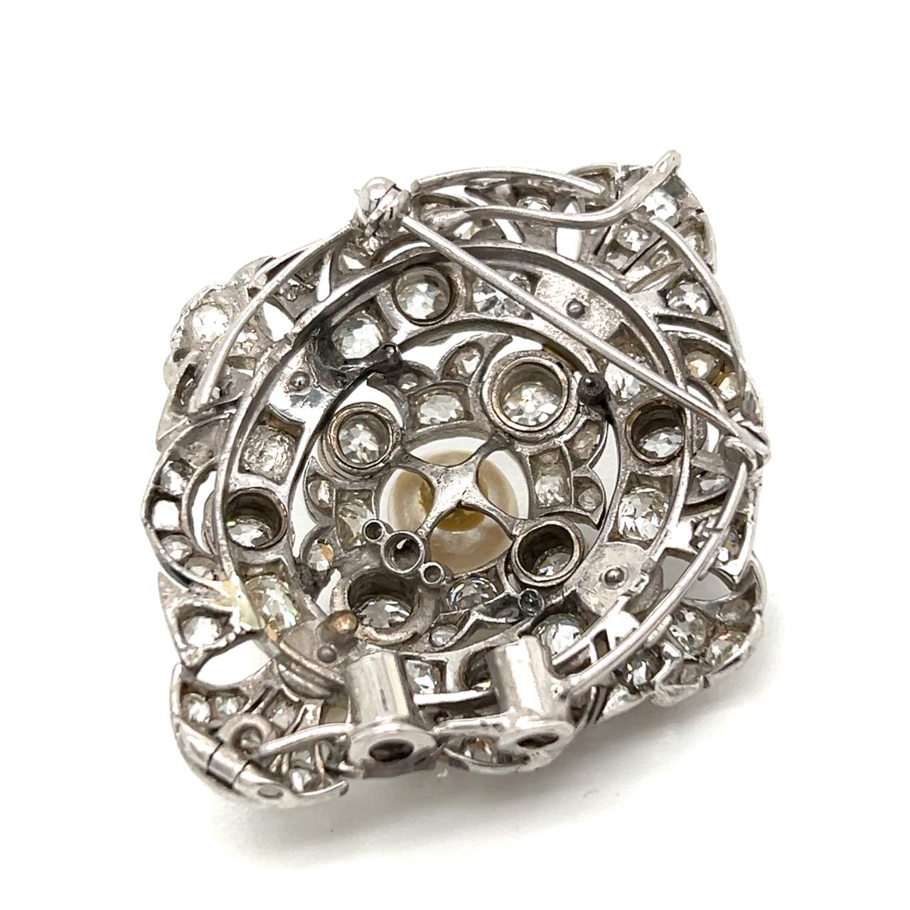 Art Deco Platinum Natural Pearl & Diamond BroochWeighing 19.9 grams