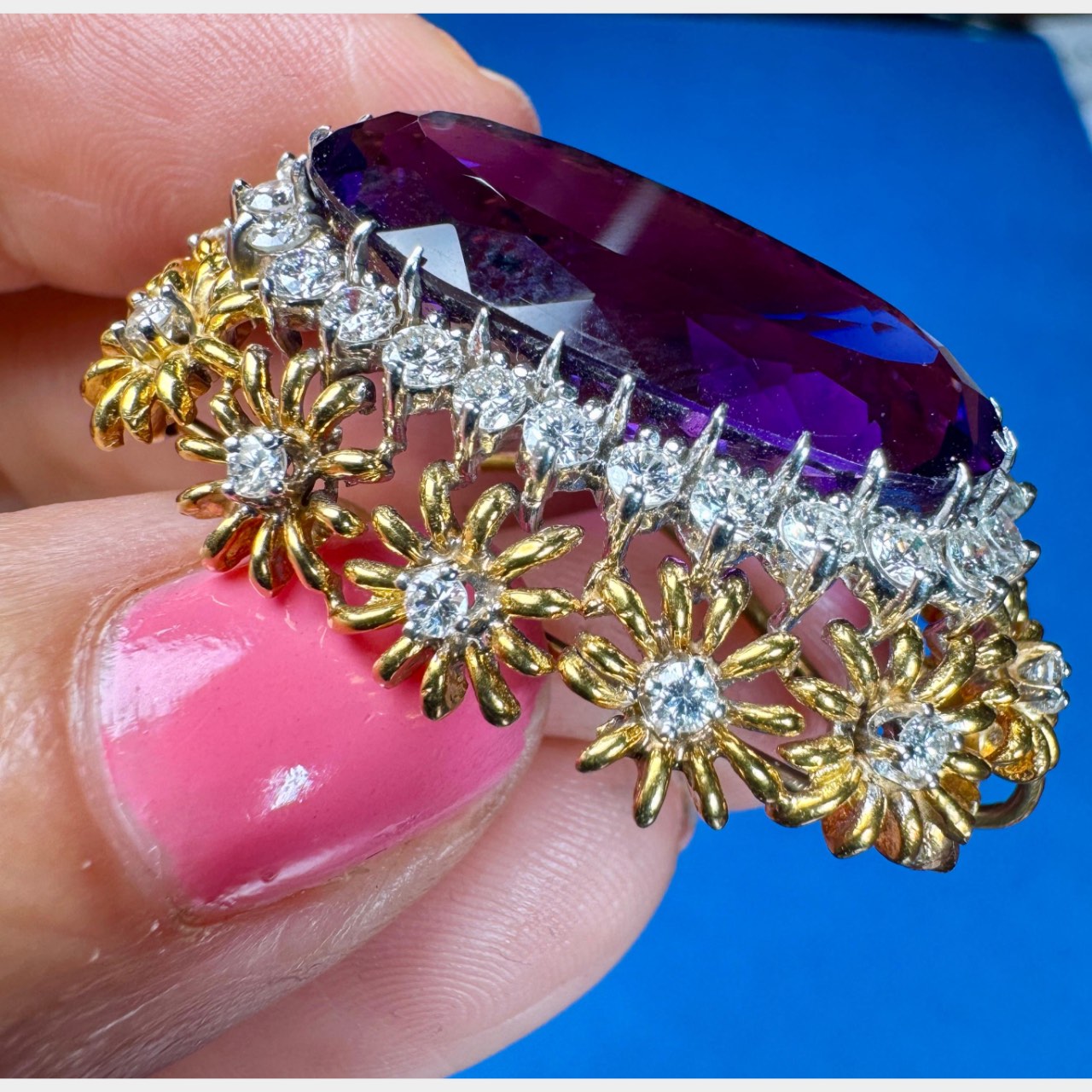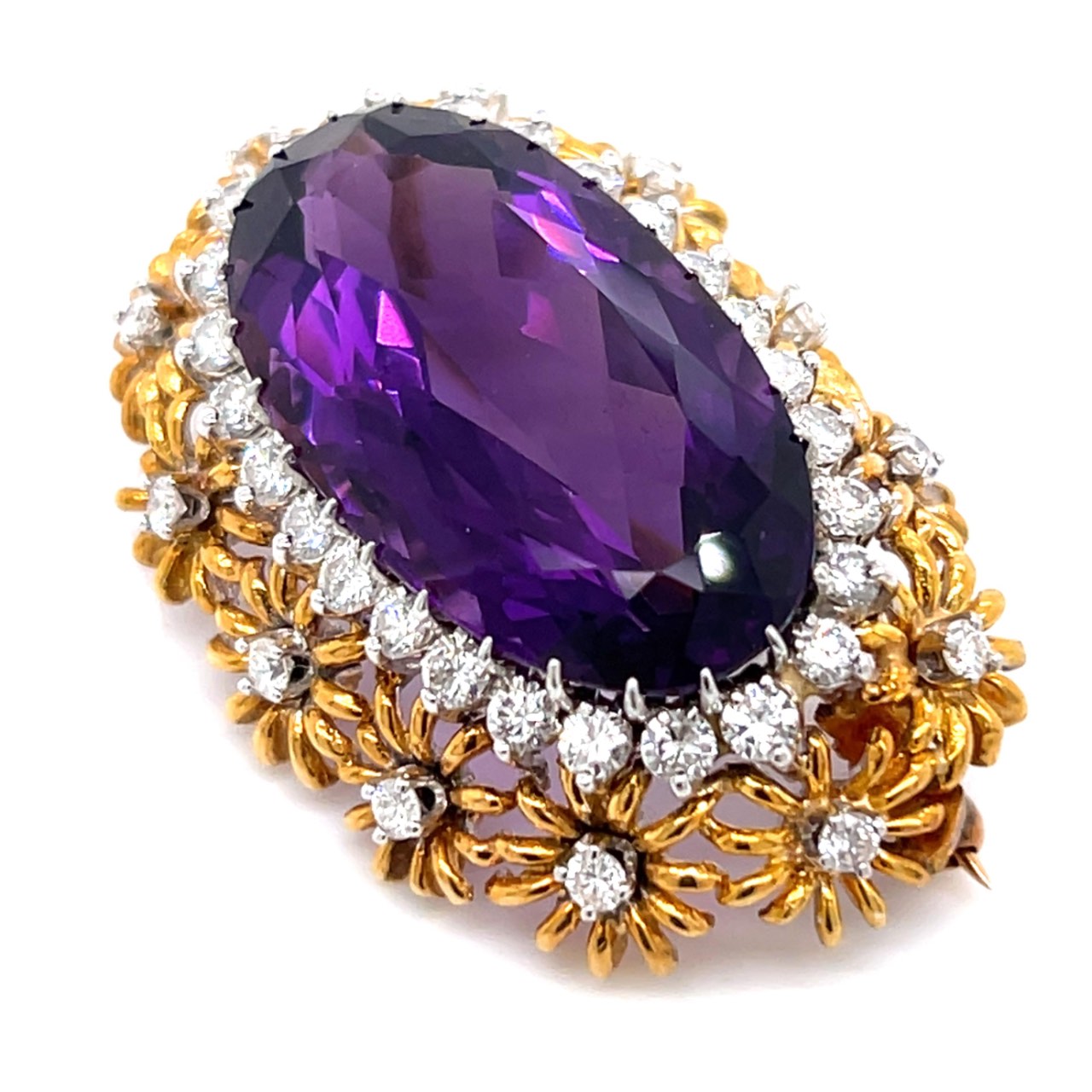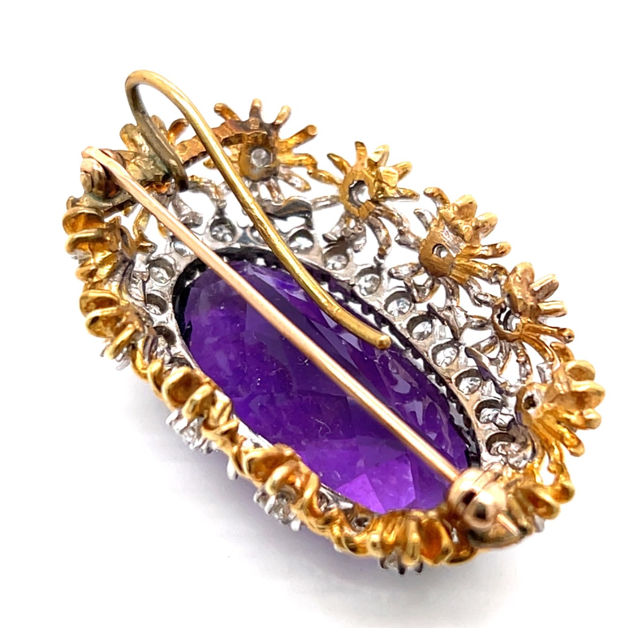 1960’s 18K Yellow Gold Amethyst & Diamond Pendant/BroochWeighing 15.8 grams