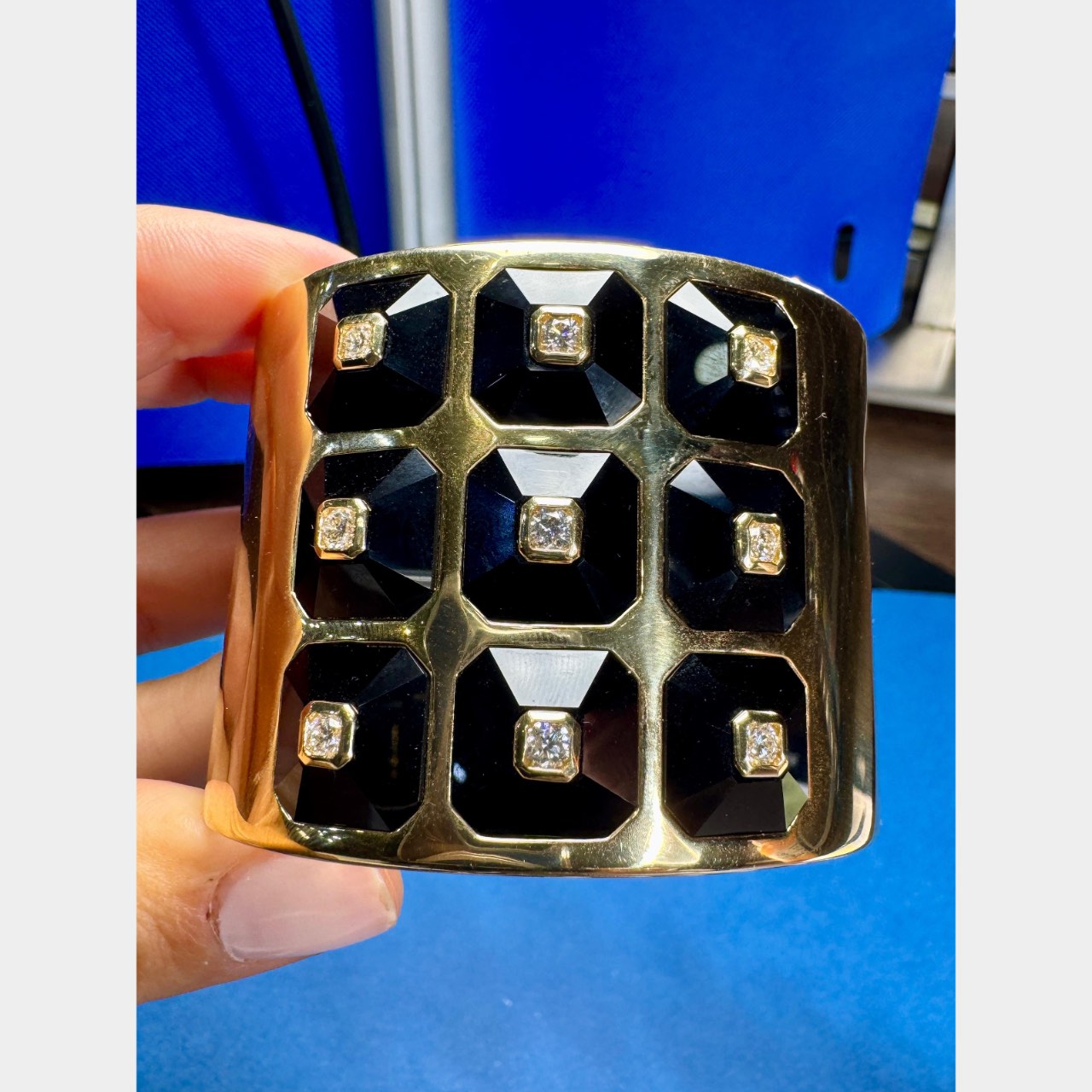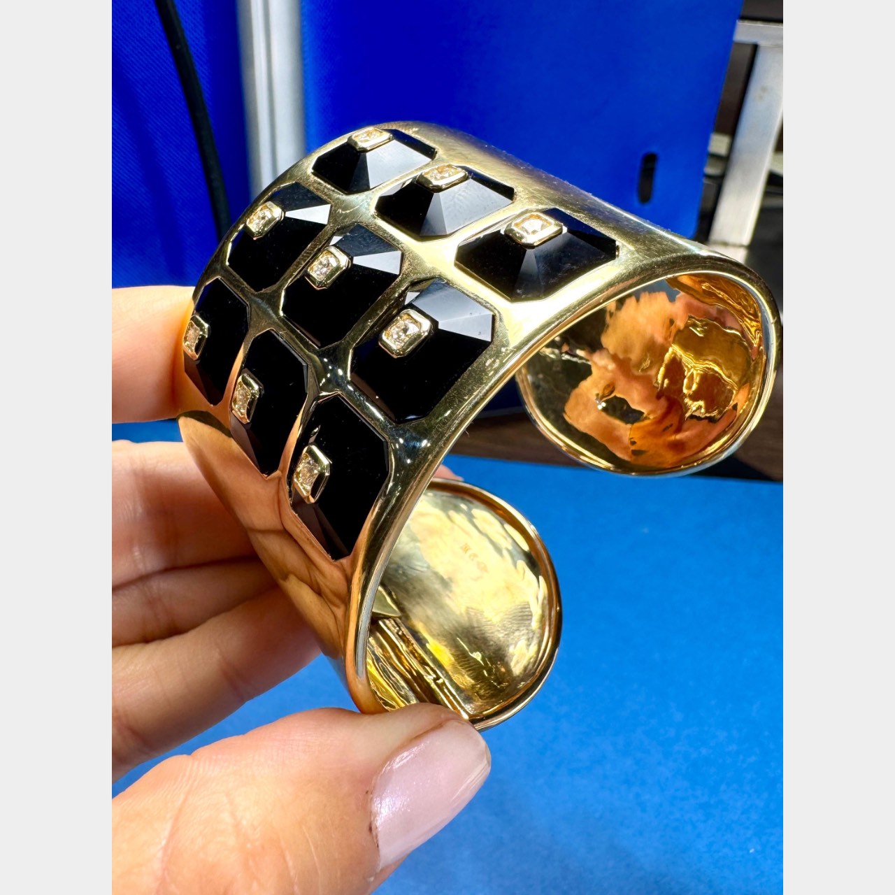 18K Yellow Gold Onyx & Diamond Bangle Cuff BraceletWeighing 132.2 grams