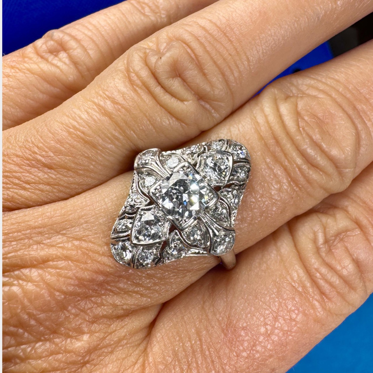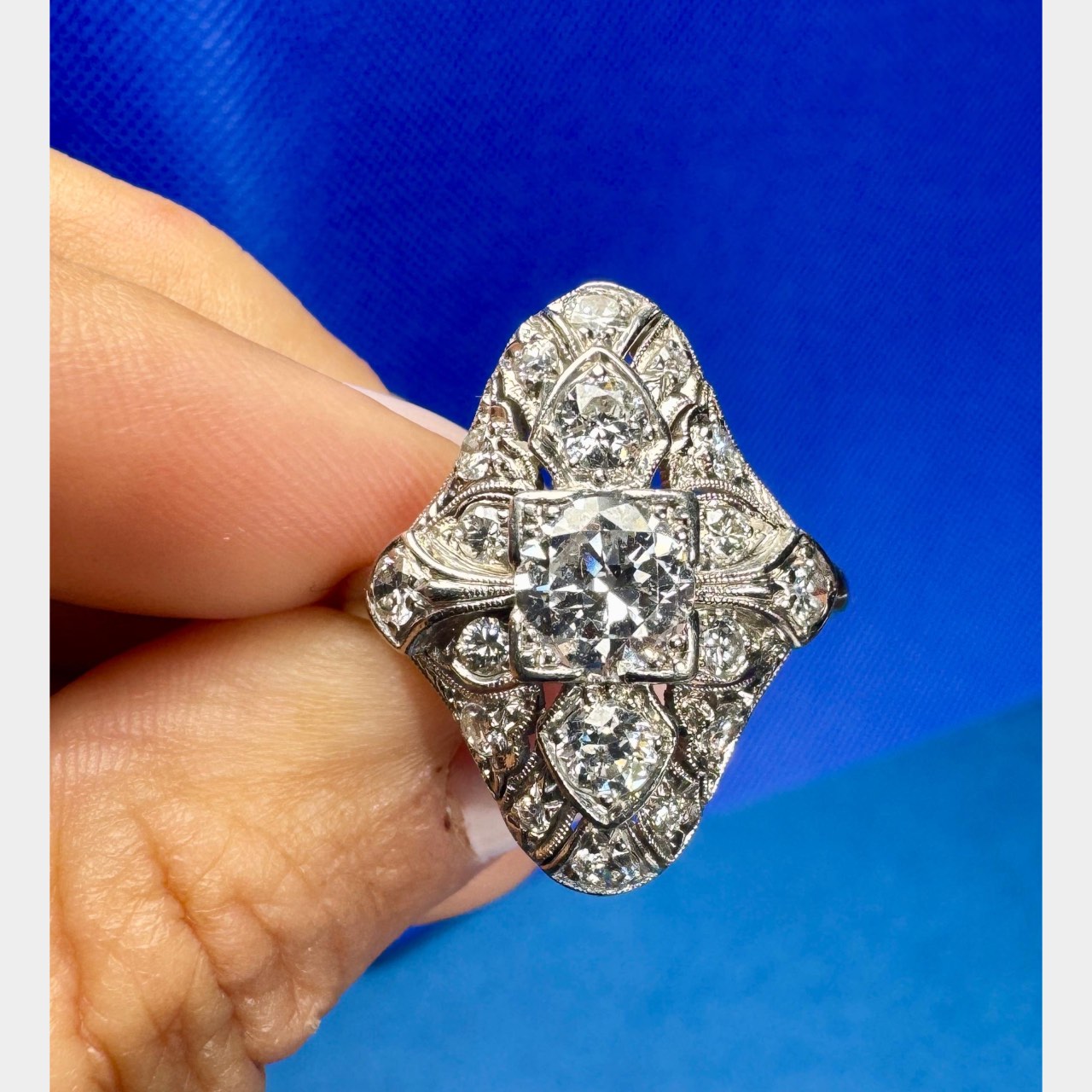 Art Deco Palladium 2.10 Ct. Diamond RingWeighing 5.0 grams