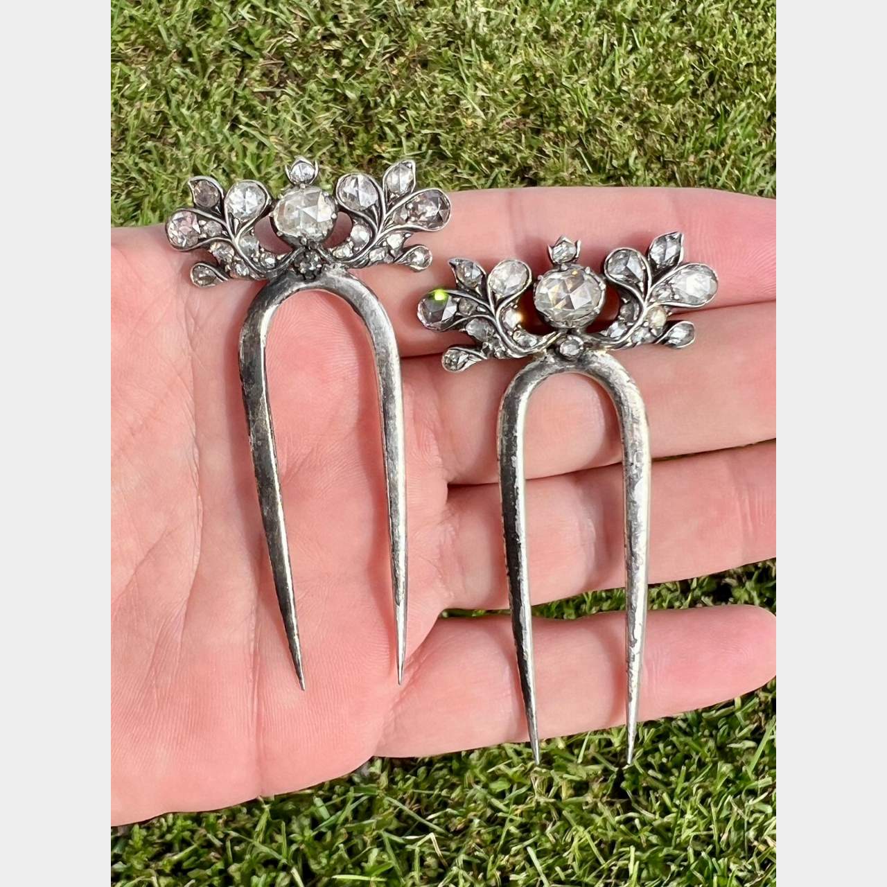 Victorian 18K & Silver Diamond Hair Pins/CombsWeighing 26.3 grams