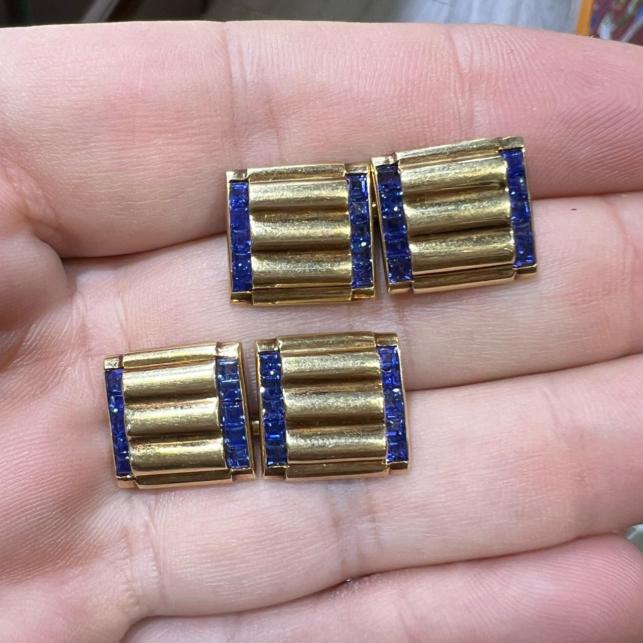 Art Deco 14K Sapphire CufflinksWeighing 16.9 grams