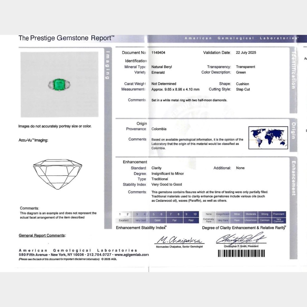 Set with an AGL Certified Colombian Emerald weighing app. 2.60 Ct.