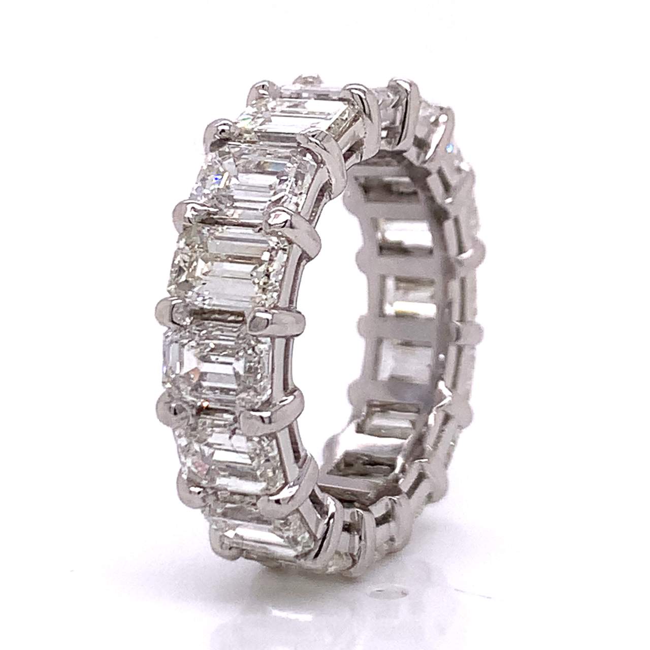 Platinum 10.75 Ct. Diamond Eternity RingWeighing 10.7 gramsSet with 16 Emerald-cut Diamonds weighing app. 10.75 Ct.G-H Color, VS1-VS2 ClarityRing Size 7