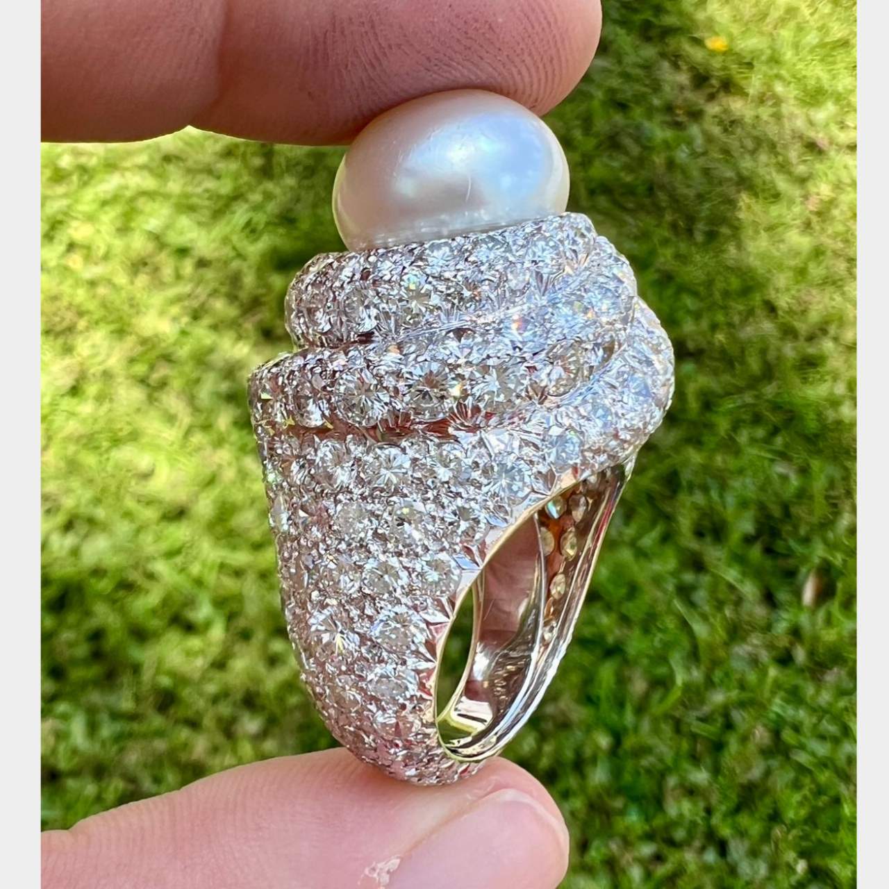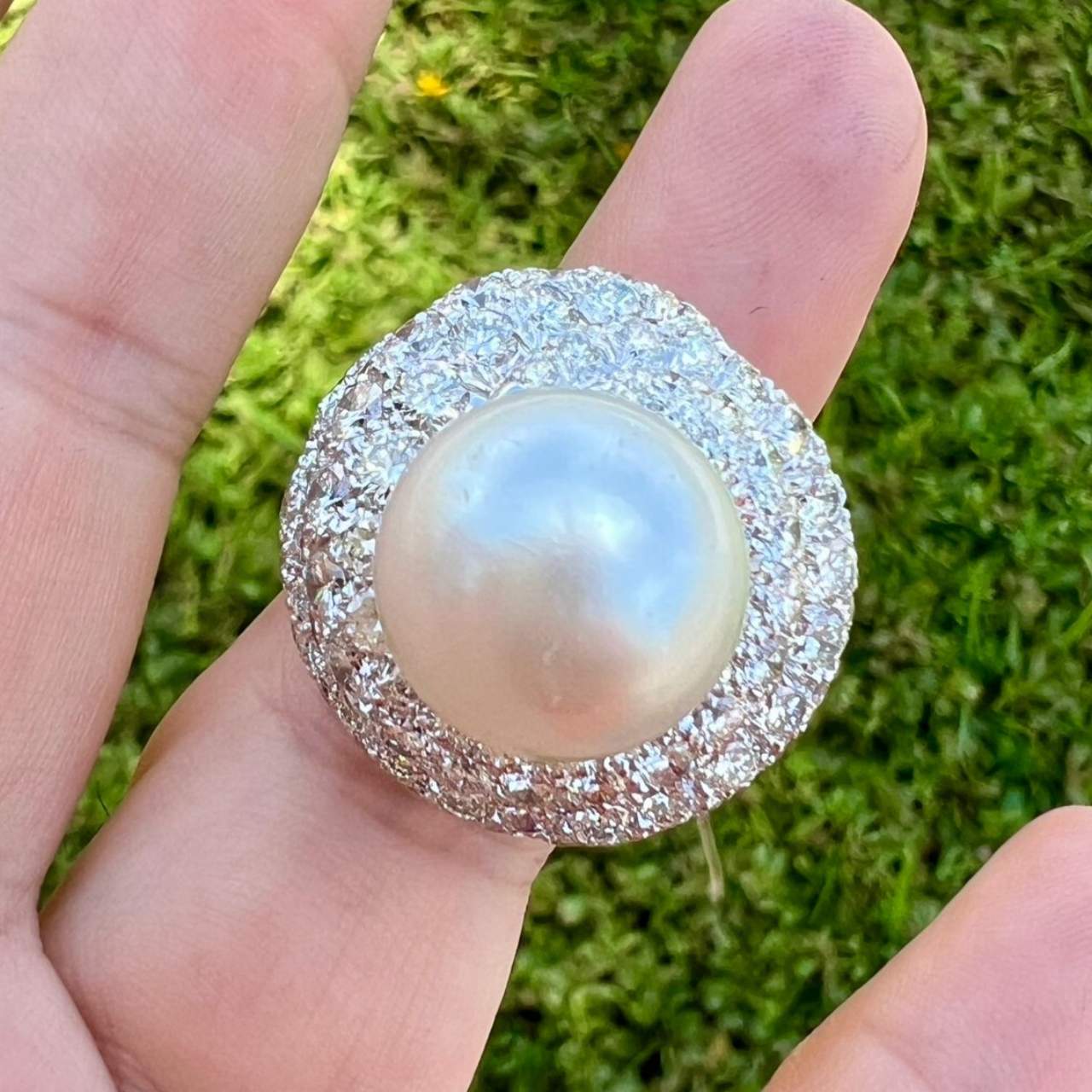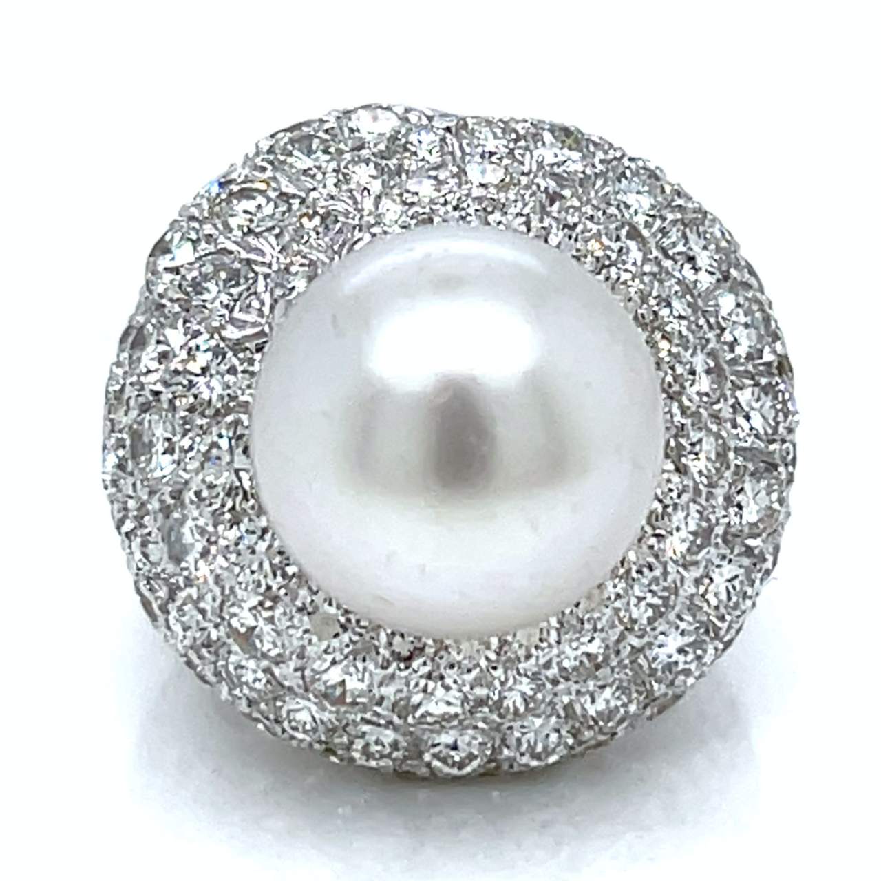 Platinum South Sea Pearl & Diamond RingWeighing 30.9 grams