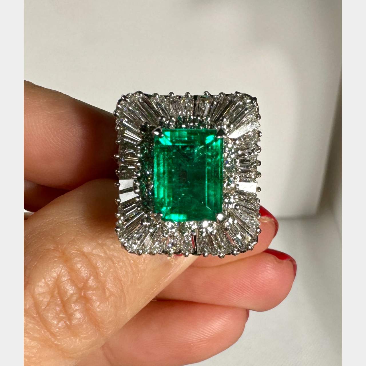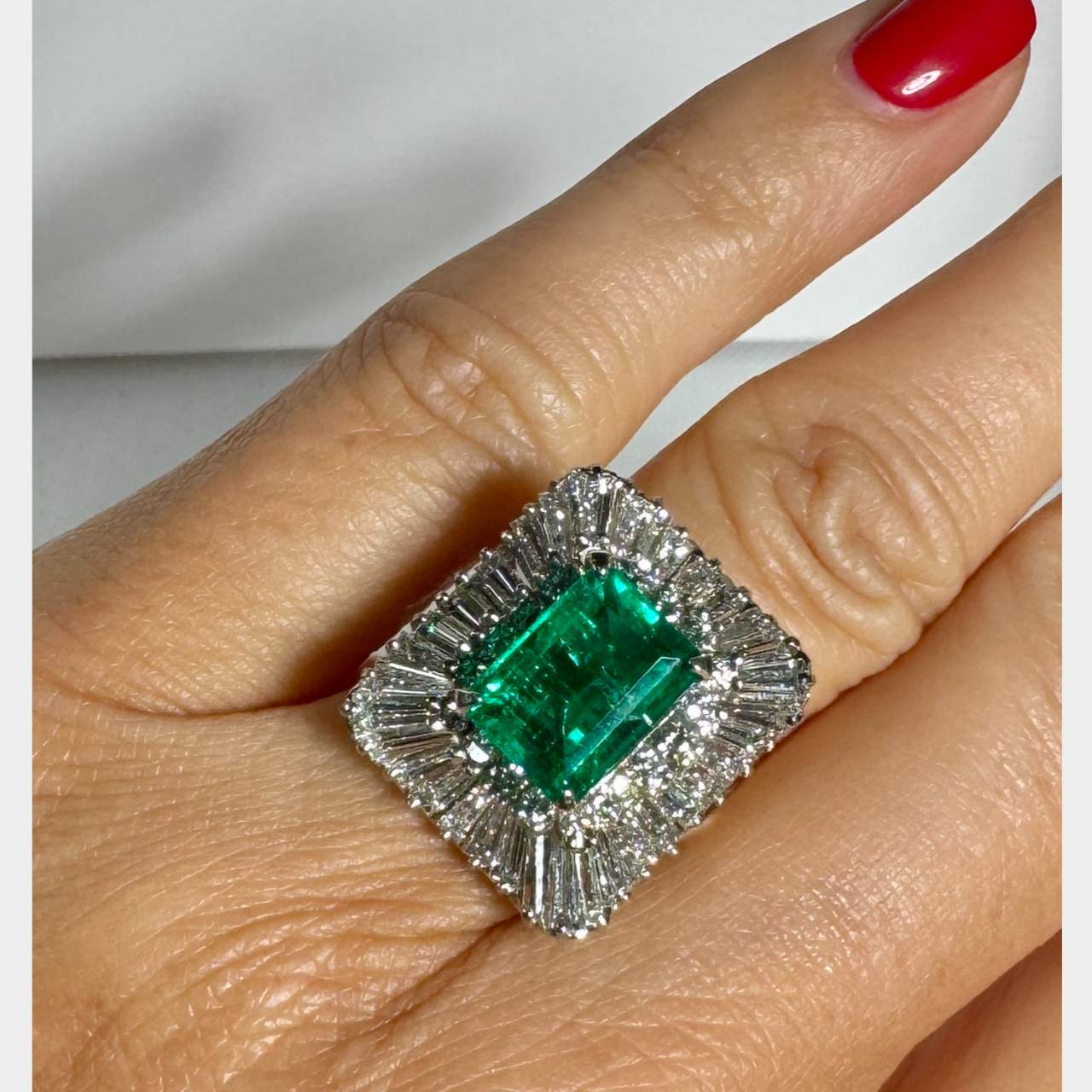 Platinum GIA Certified 3.33 Ct. Colombian Emerald & Diamond RingWeighing 13.5 grams