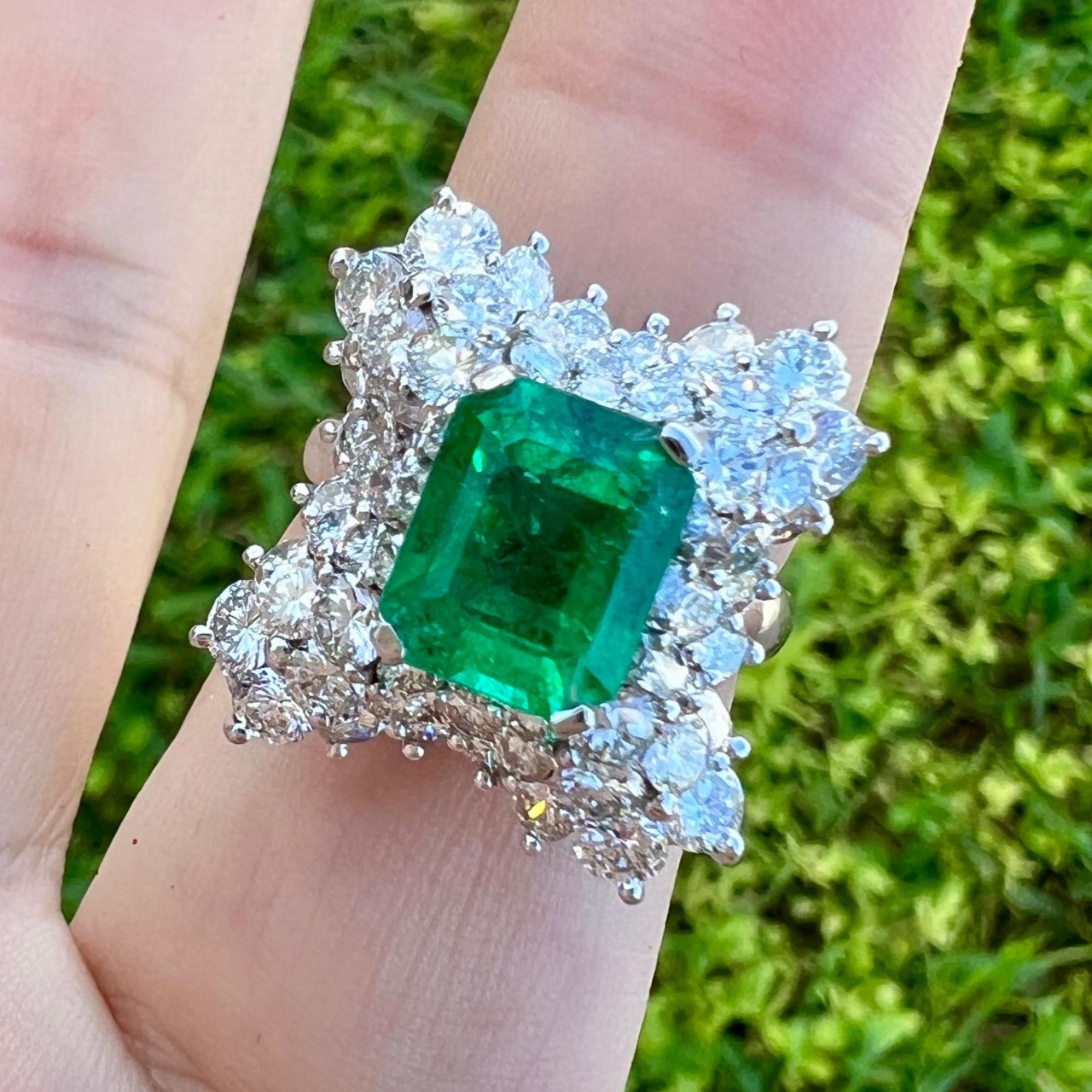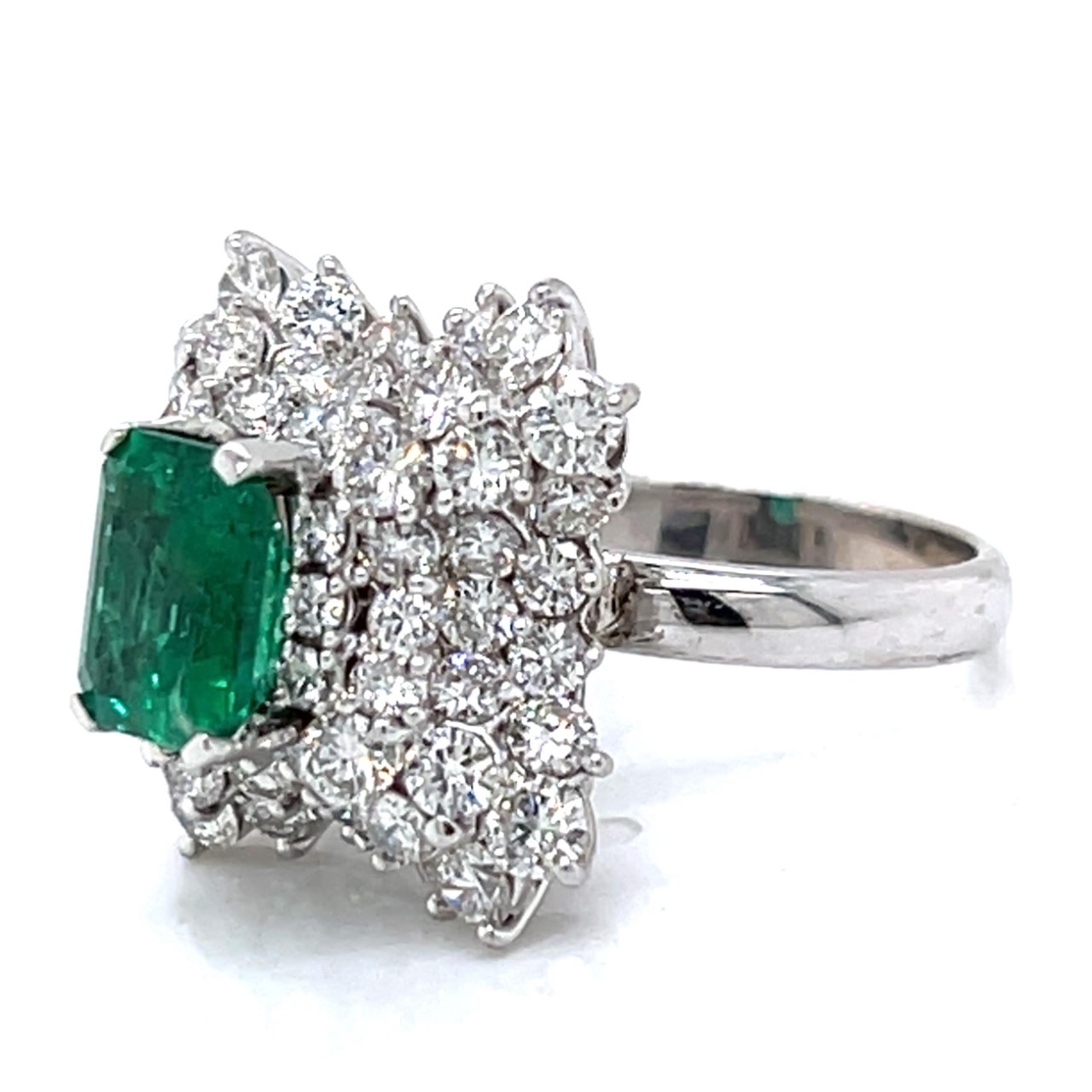 1960’s Platinum Emerald & Diamond Cocktail RingWeighing 14.3 grams