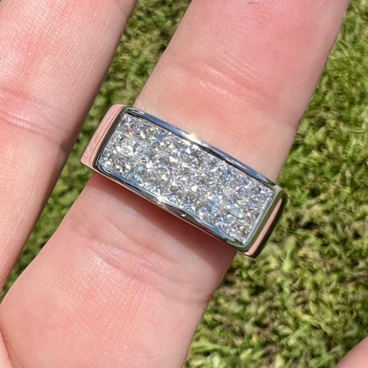 Set with 27 Princess-cut Diamonds weighing app. 2.15 Ct.F-G Color, VVS-VS Clarity