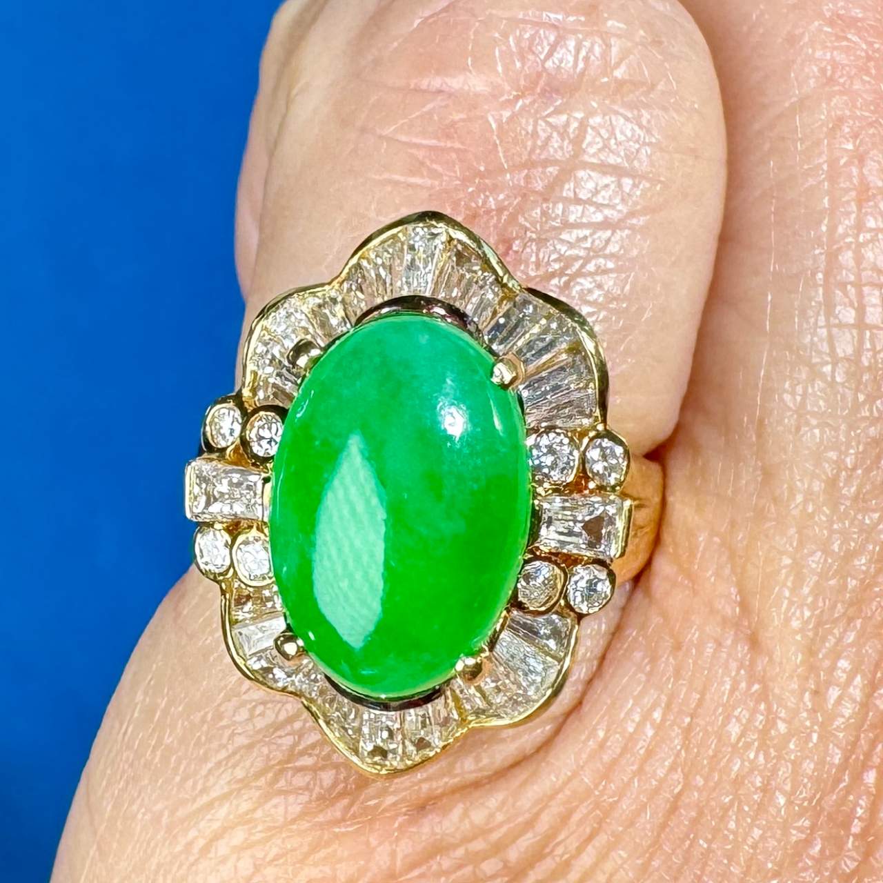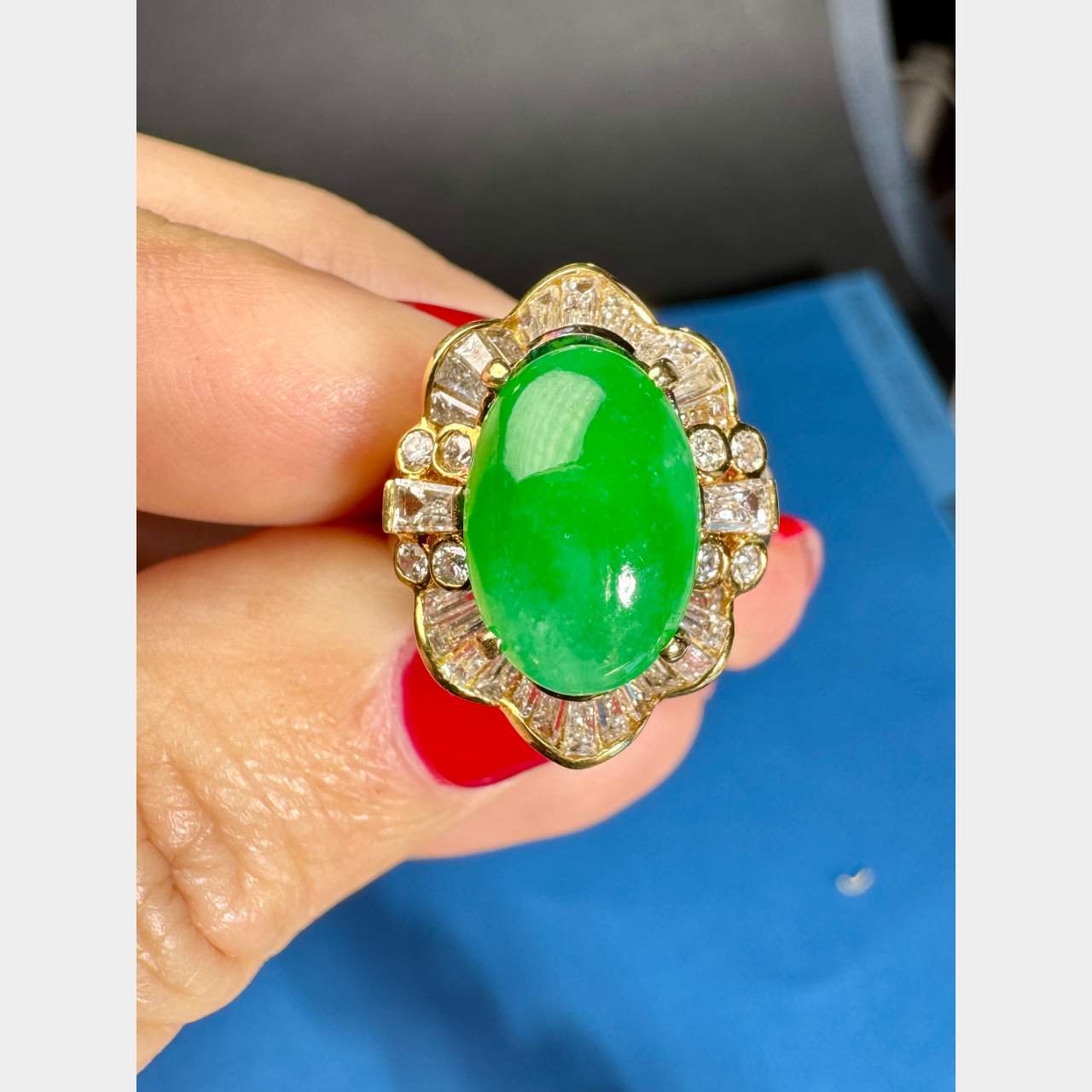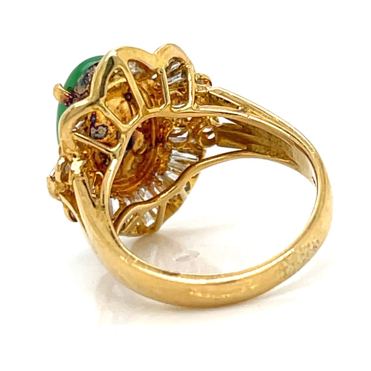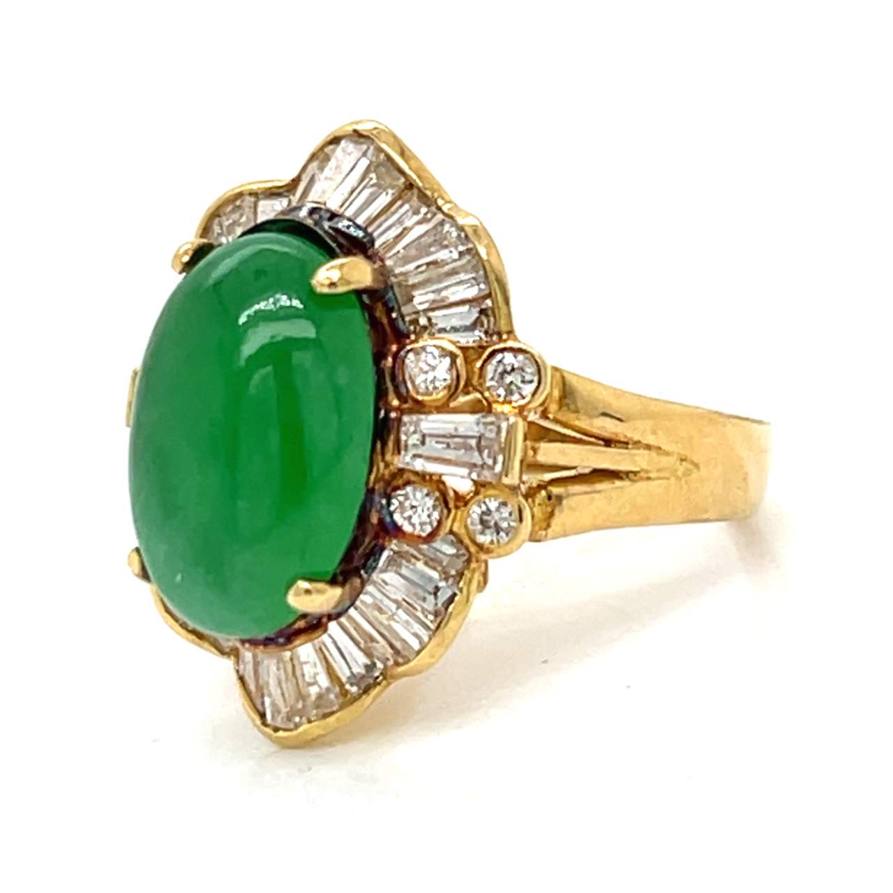 18K Yellow Gold Jade & Diamond RingWeighing 7.4 grams