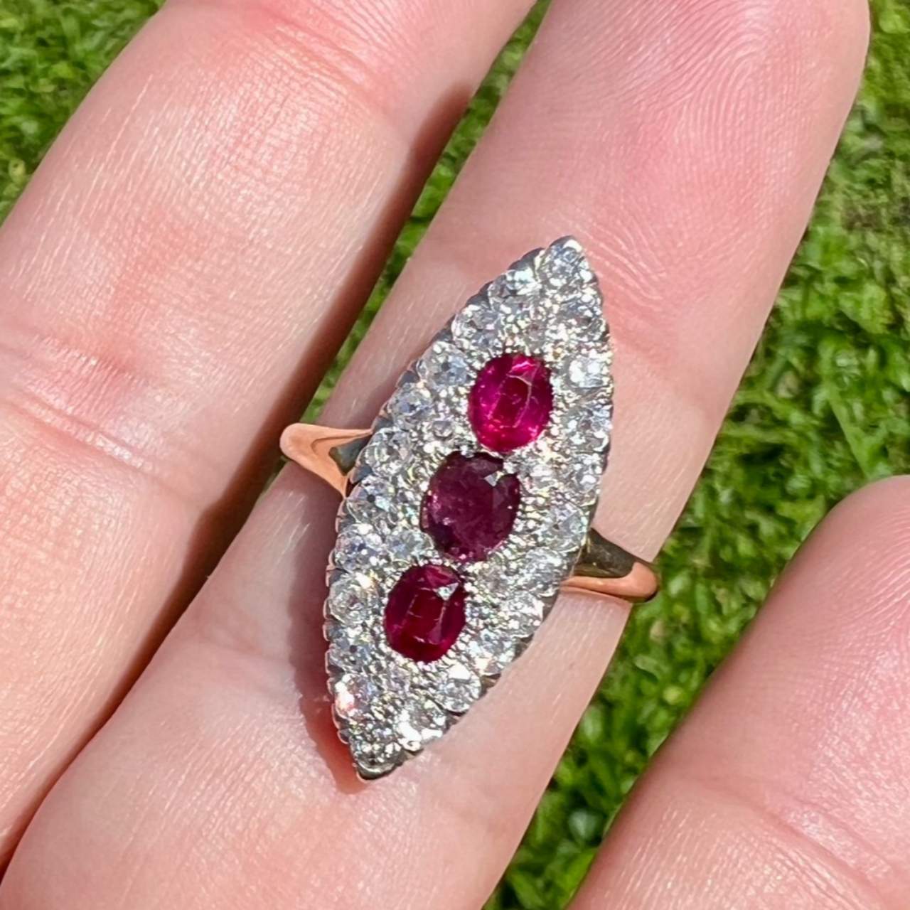 Victorian 18K & Platinum Ruby and Diamond RingWeighing 3.7 grams