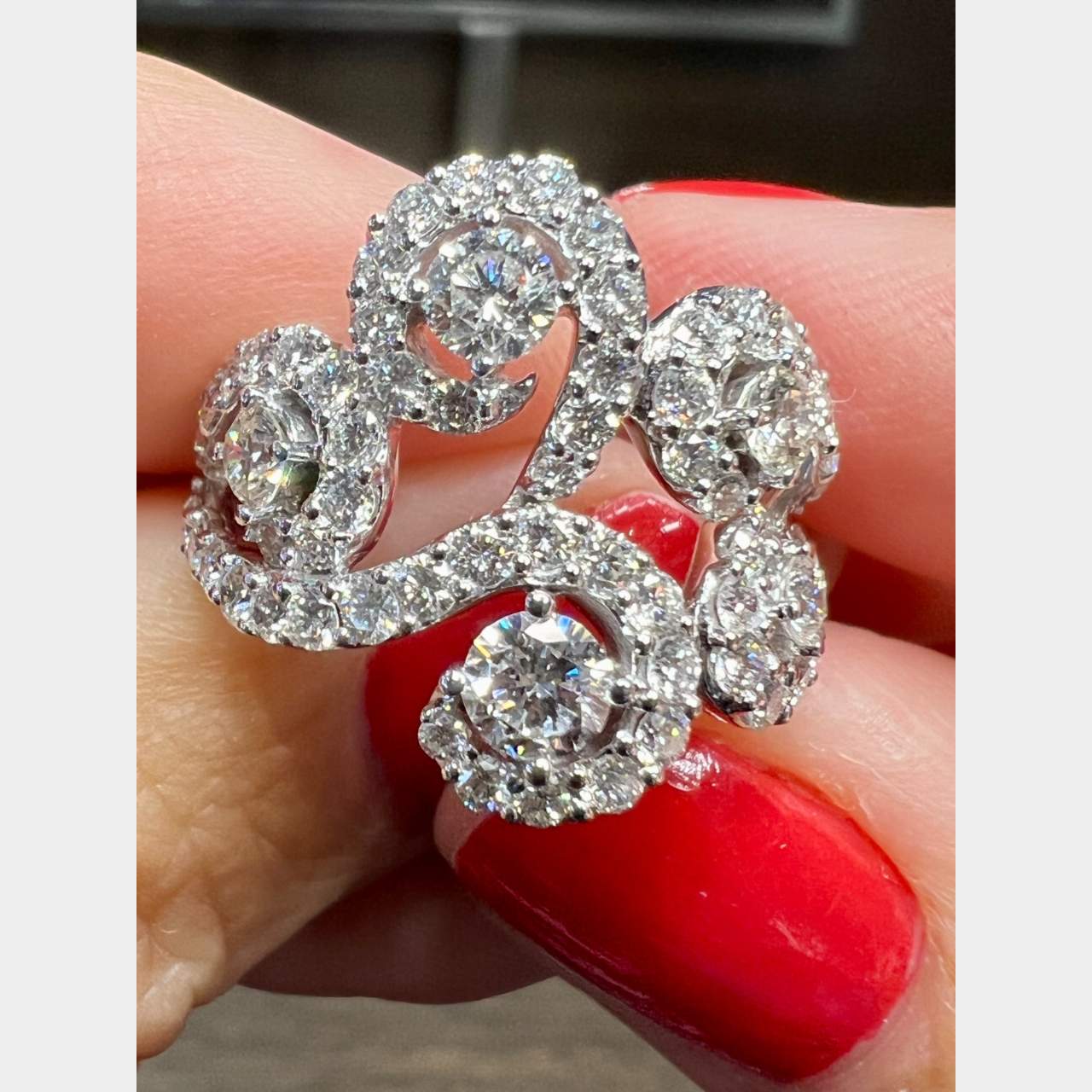 18K White Gold Diamond RingWeighing 7.1 gramsSet with 70 Diamonds weighing app. 2.11 Ct.F-G Color, VVS-VS ClarityRing Size 6