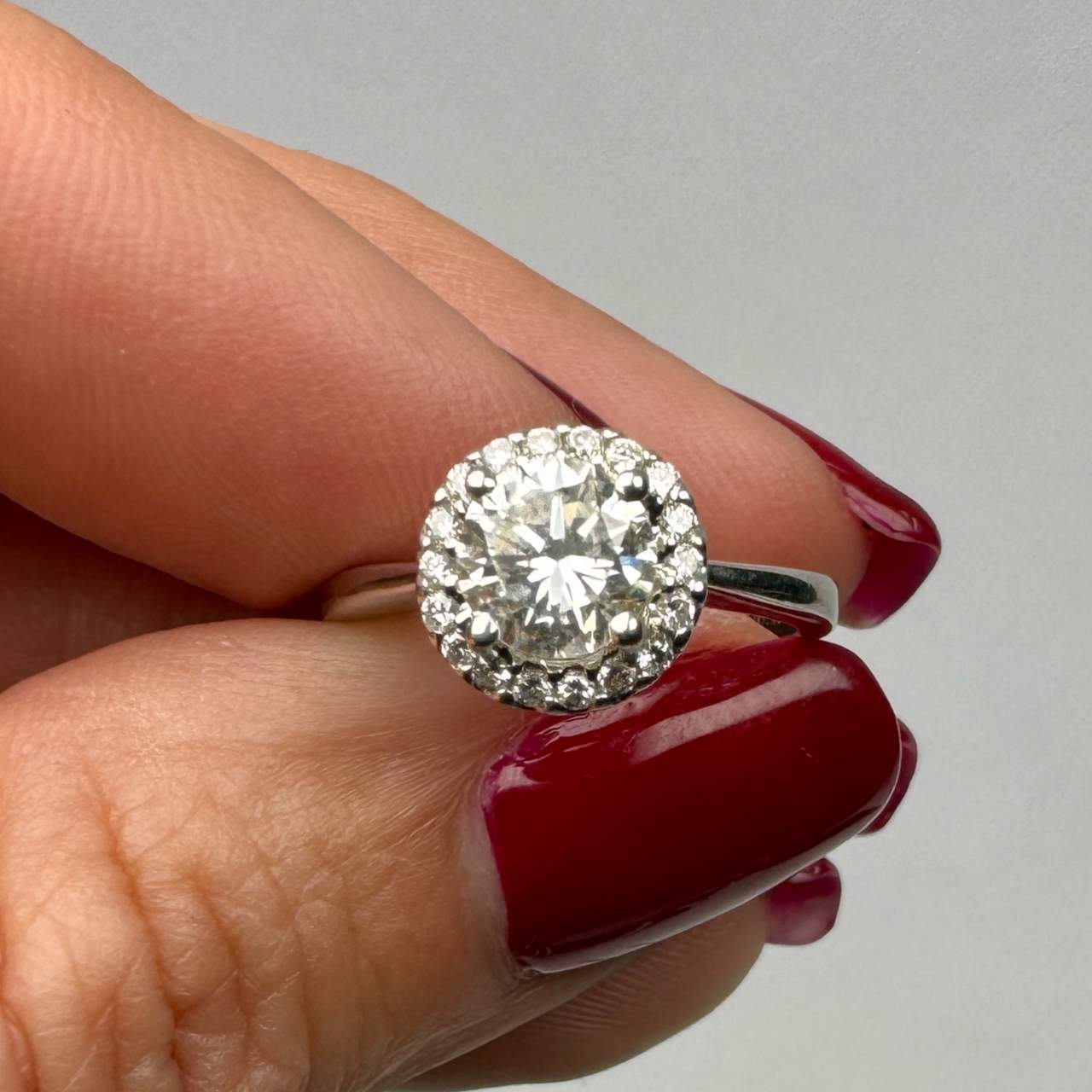 0.93 Ct Diamond RingCenter Diamond is a Round 0.80 Ct.* I Color VVS Clarity Mounting has numerous round diamonds weighing 0.13 Ct.* H-I Color VVS1-VS1 ClaritySize 618K White Gold Gold Weight: 4.10 gm.*approx. weight