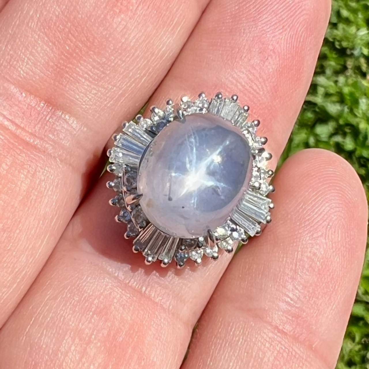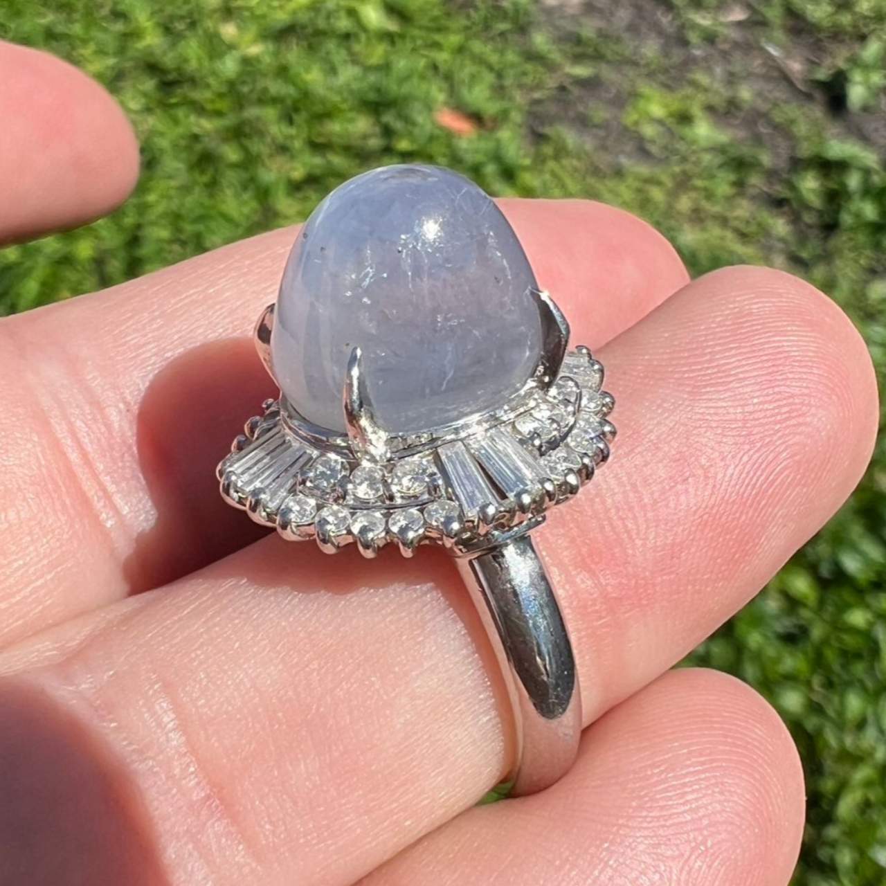 Platinum 16.83 Ct. Star Sapphire & Diamond RingWeighing 13.4 grams
