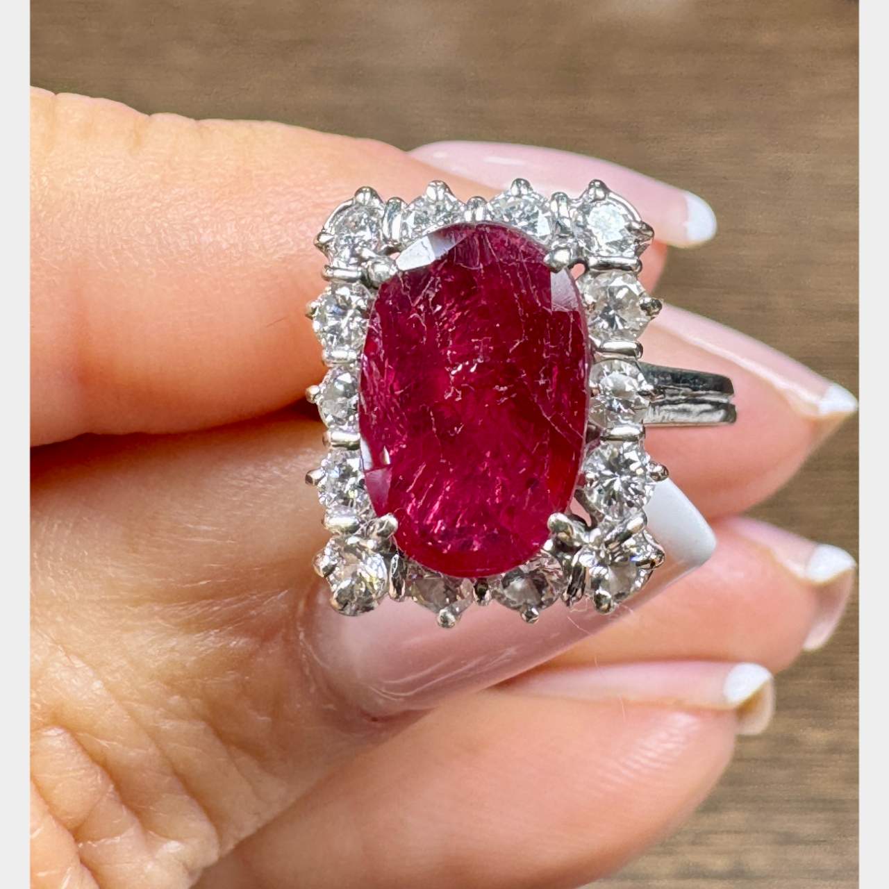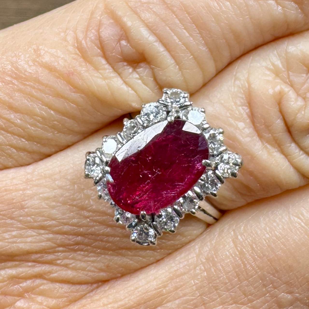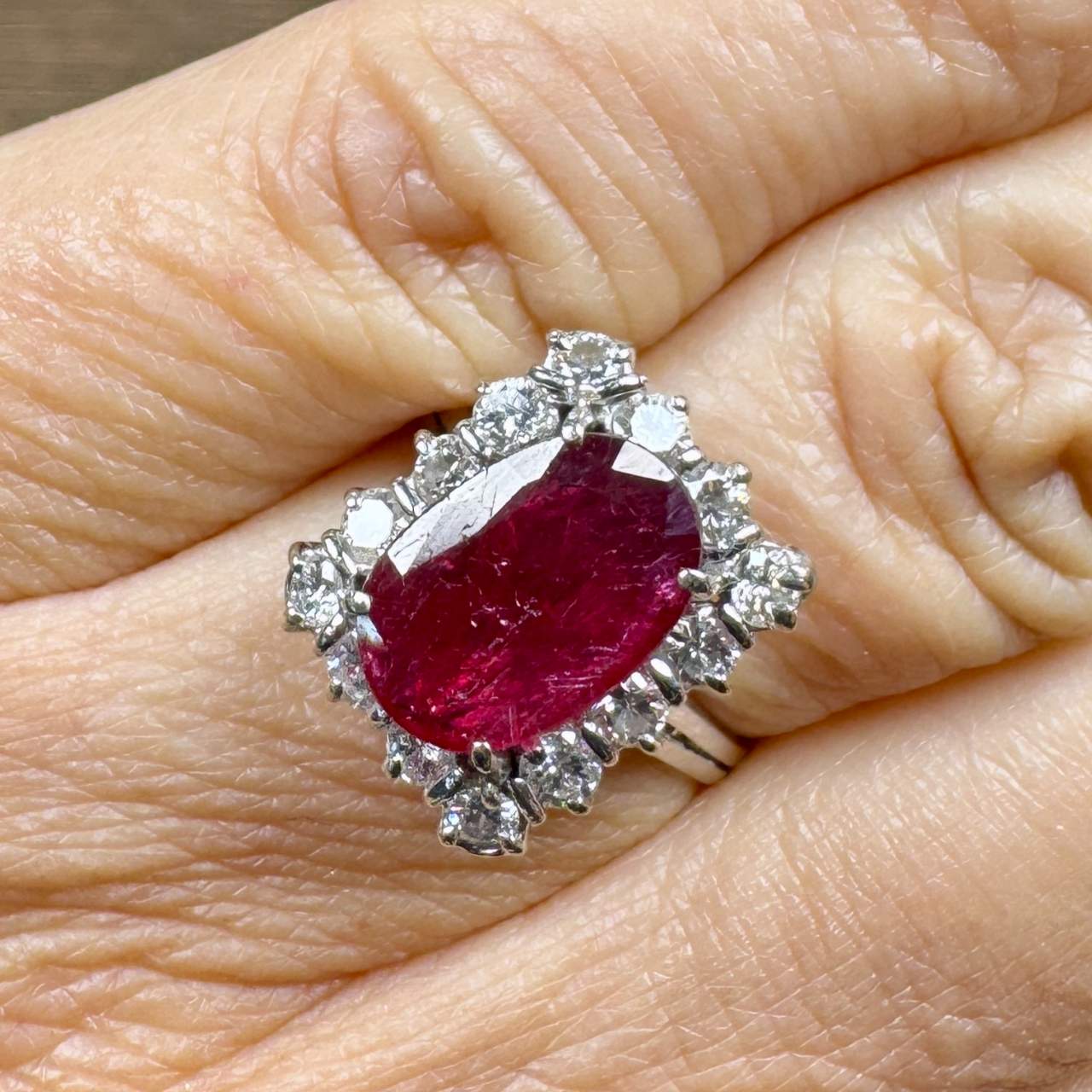 18K White Gold Ruby & Diamond RingWeighing 4.7 grams