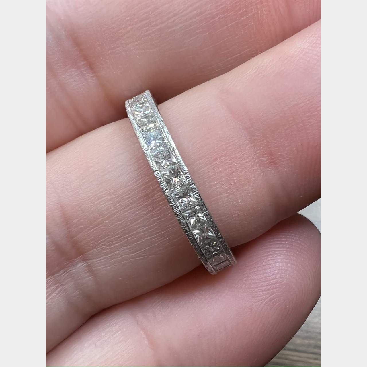 Platinum 1.50 Ct. Princess-cut Diamond Eternity BandWeighing 3.4 gramsSet with 29 Princess-cut Diamonds weighing 1.50 Ct.F-G Color, VVS-VS ClarityRing Size 5.5