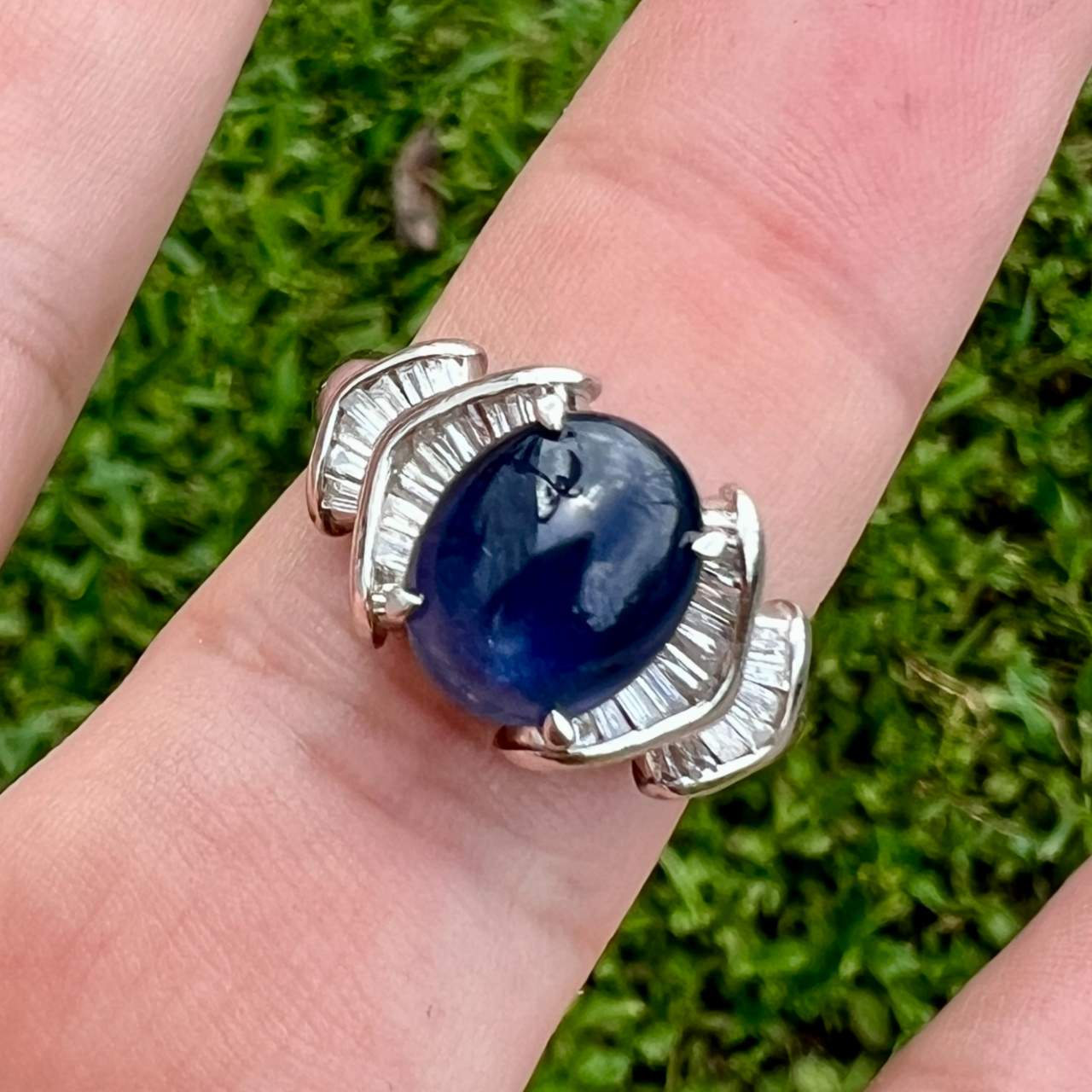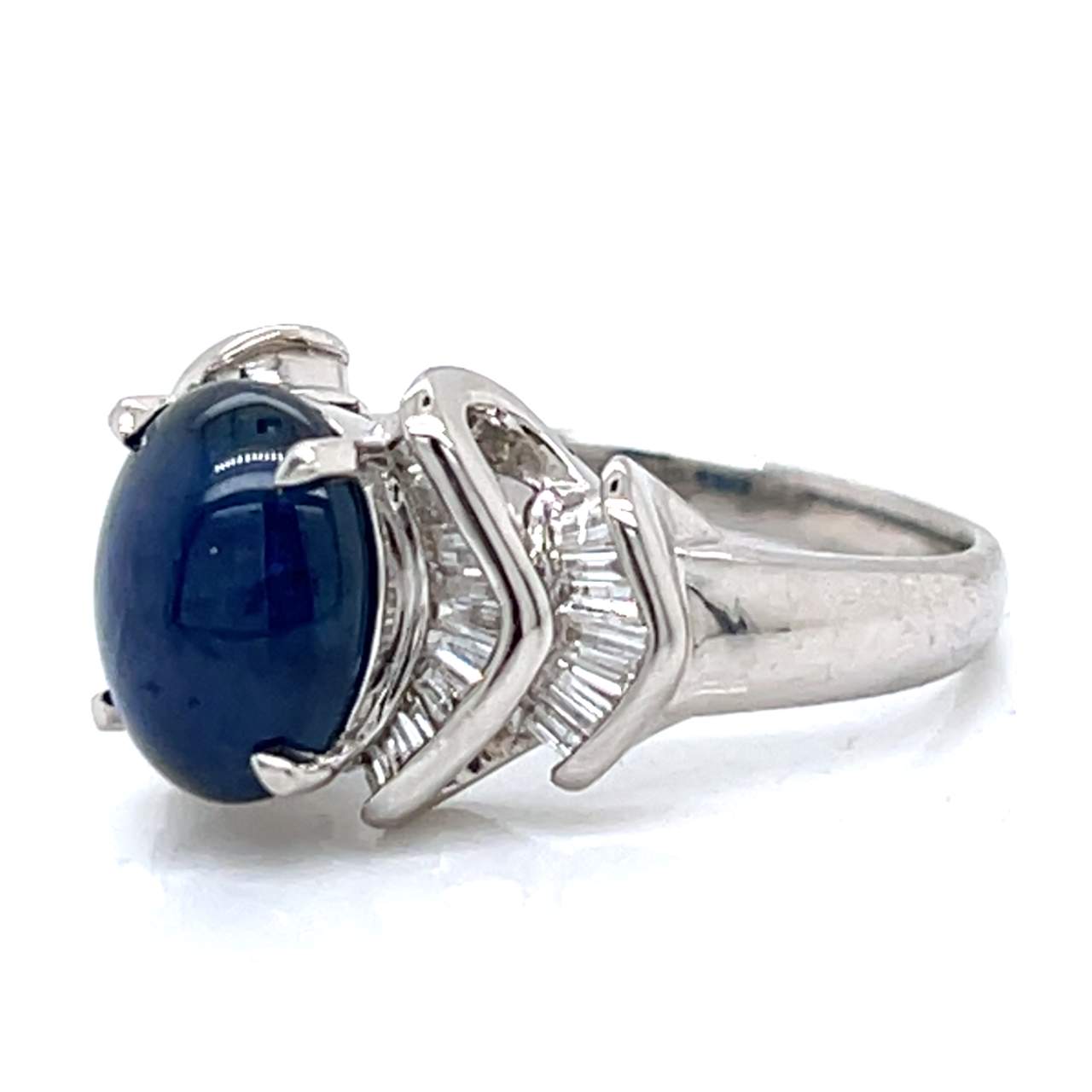 Set with an a 3.03 Ct. Oval Cabochon Sapphire