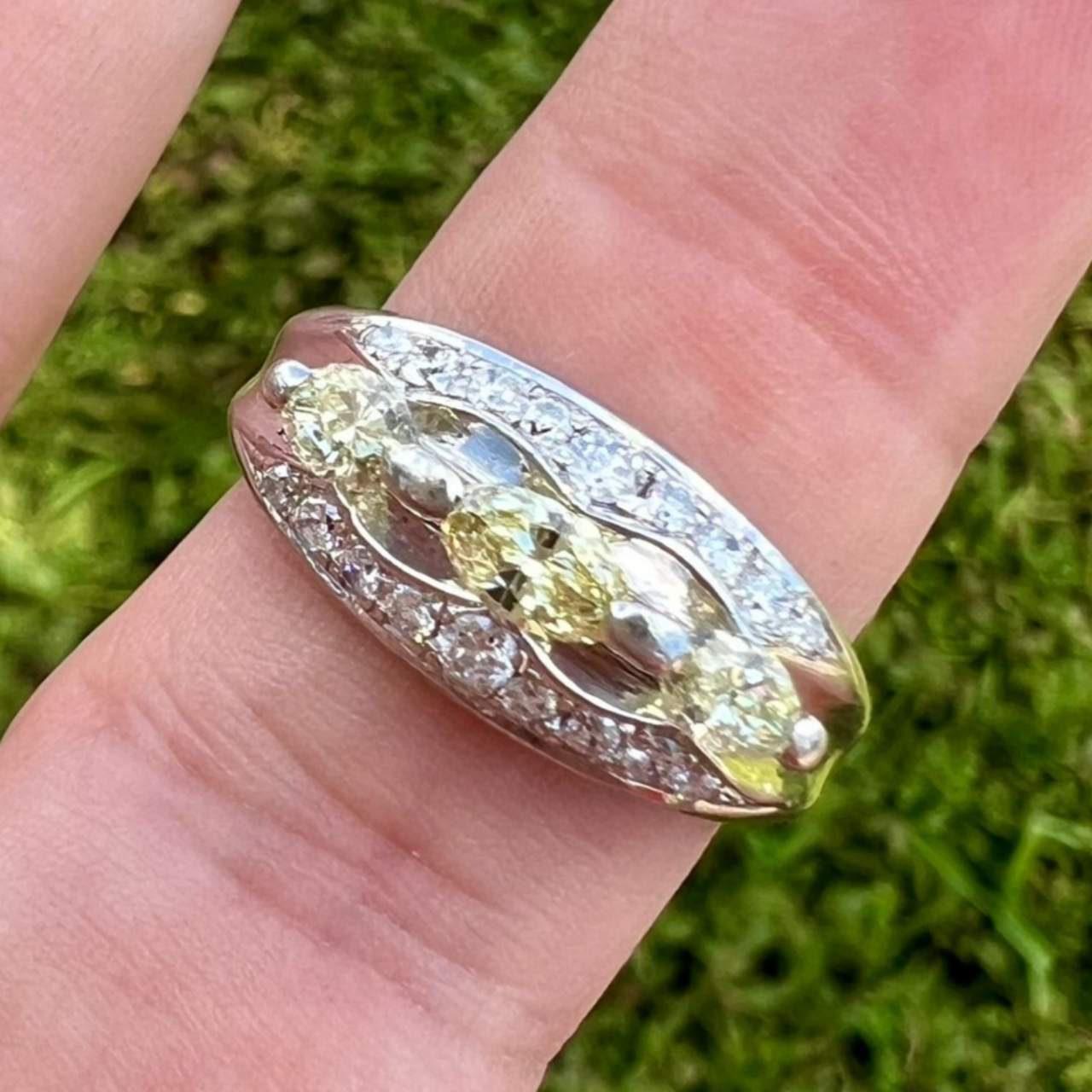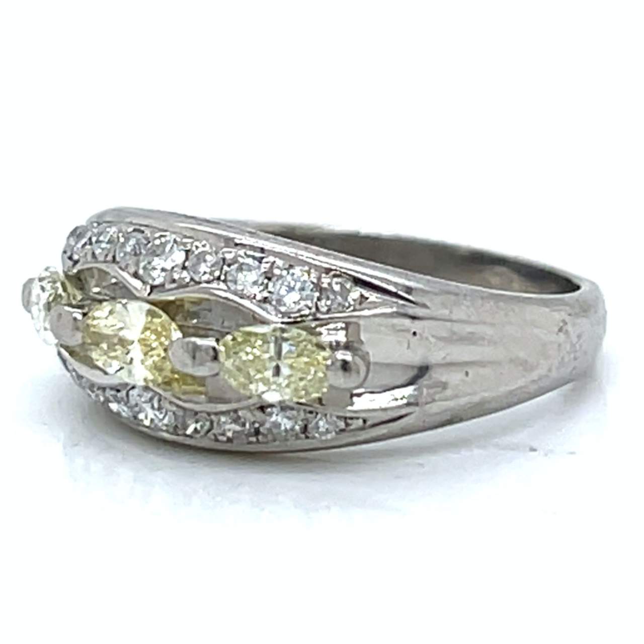 Platinum Fancy Yellow Diamond RingWeighing 7.3 grams