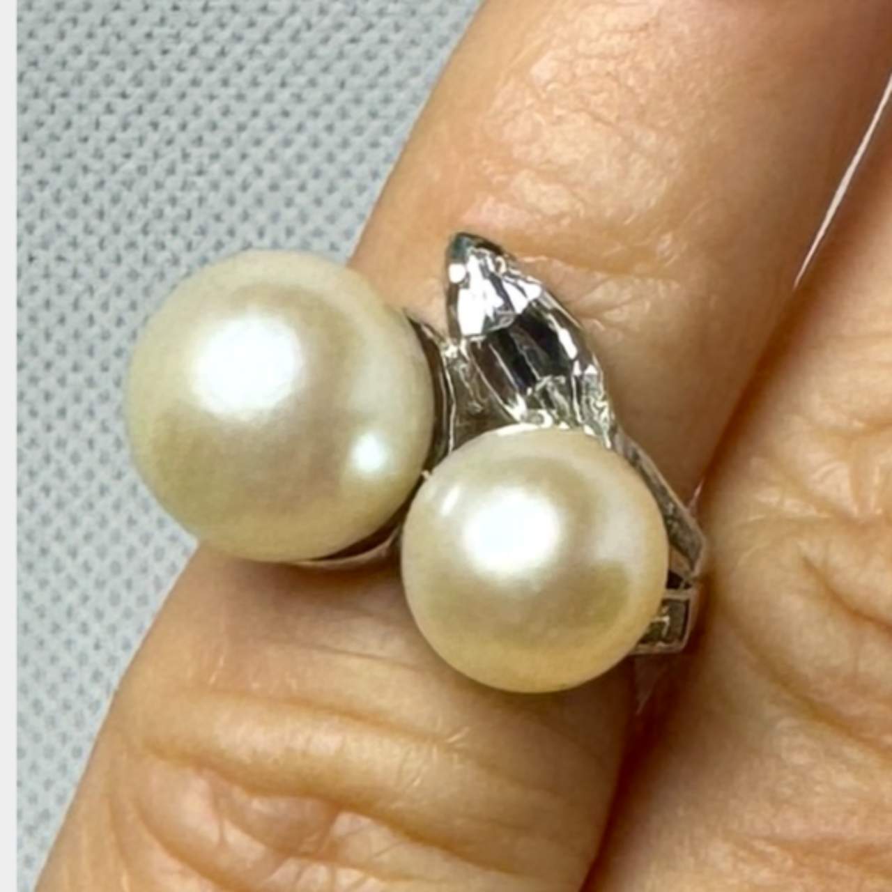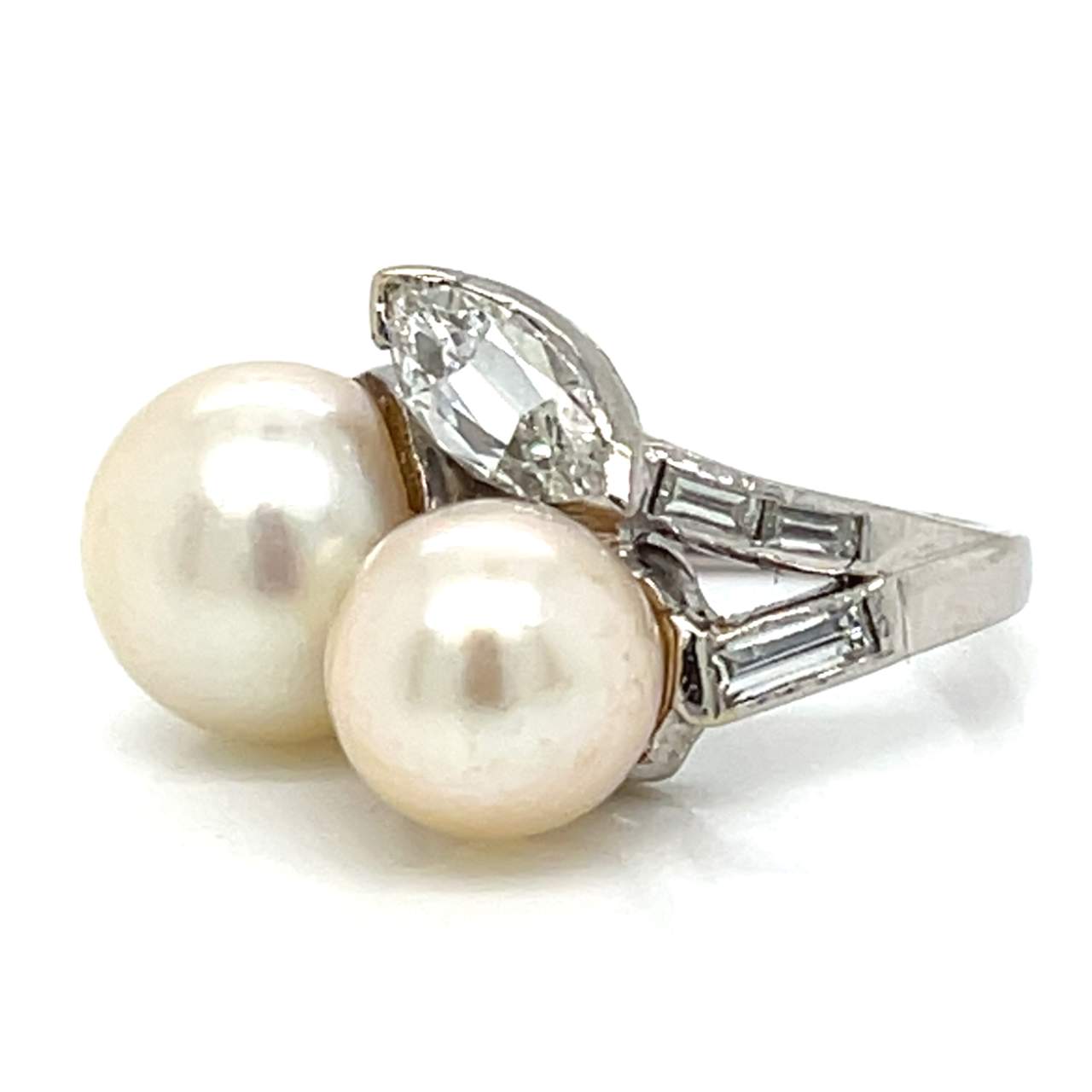 1950’s Platinum Pearl & Diamond RingWeighing 6.7 grams