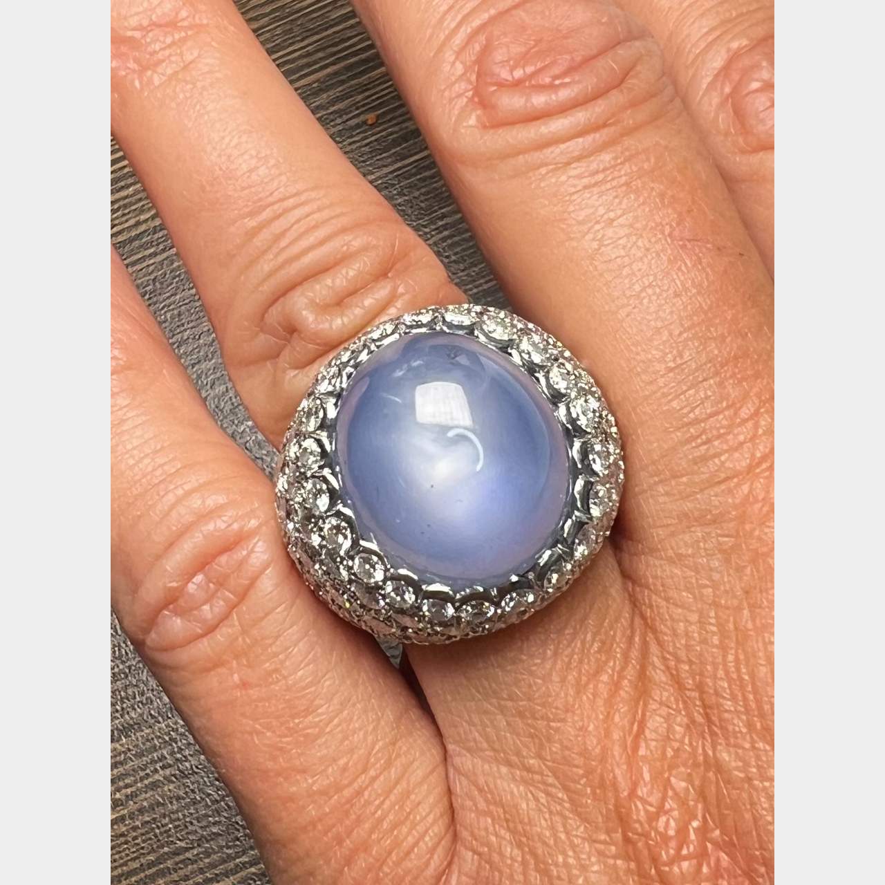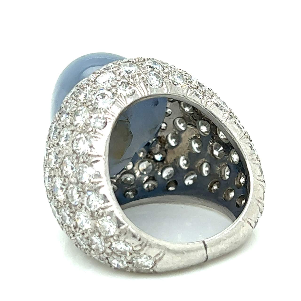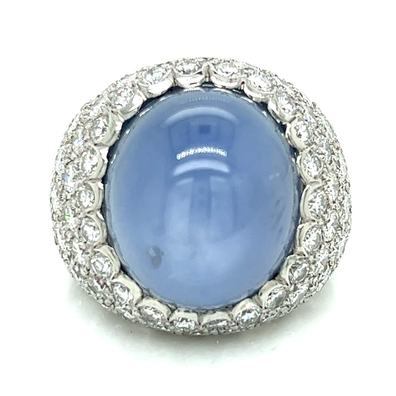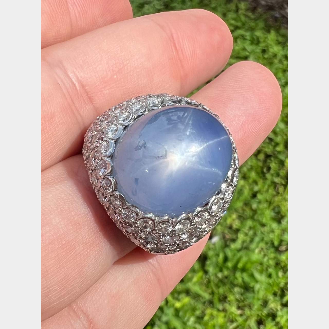 Platinum 40.00 Ct. Star Sapphire & Diamond Ring