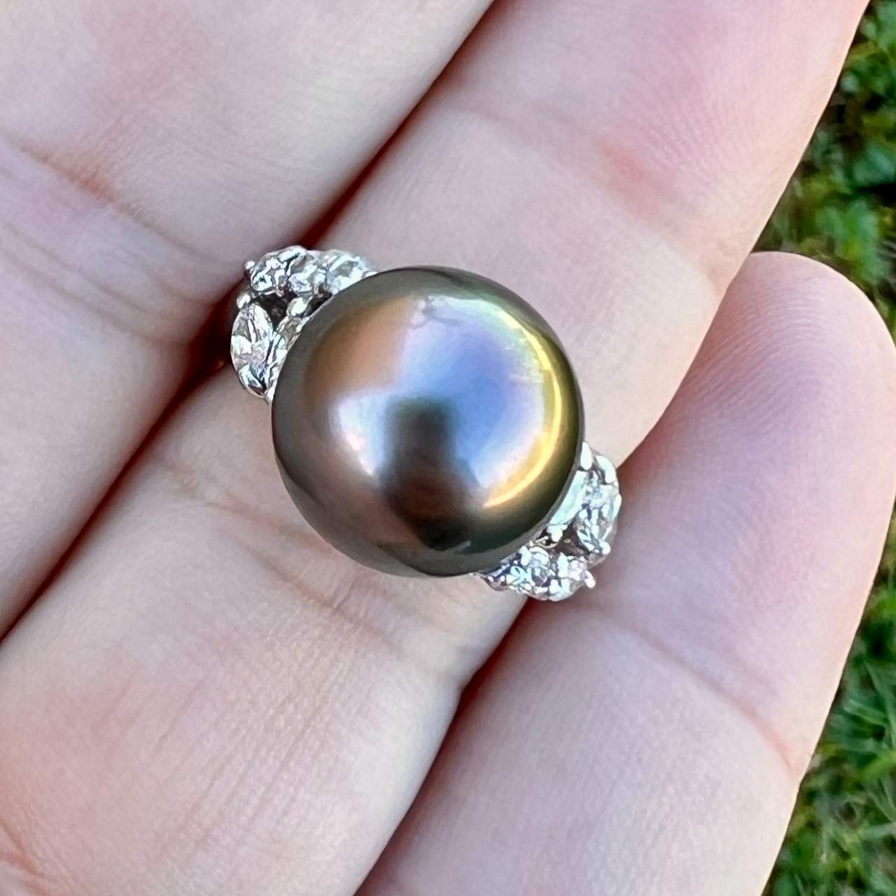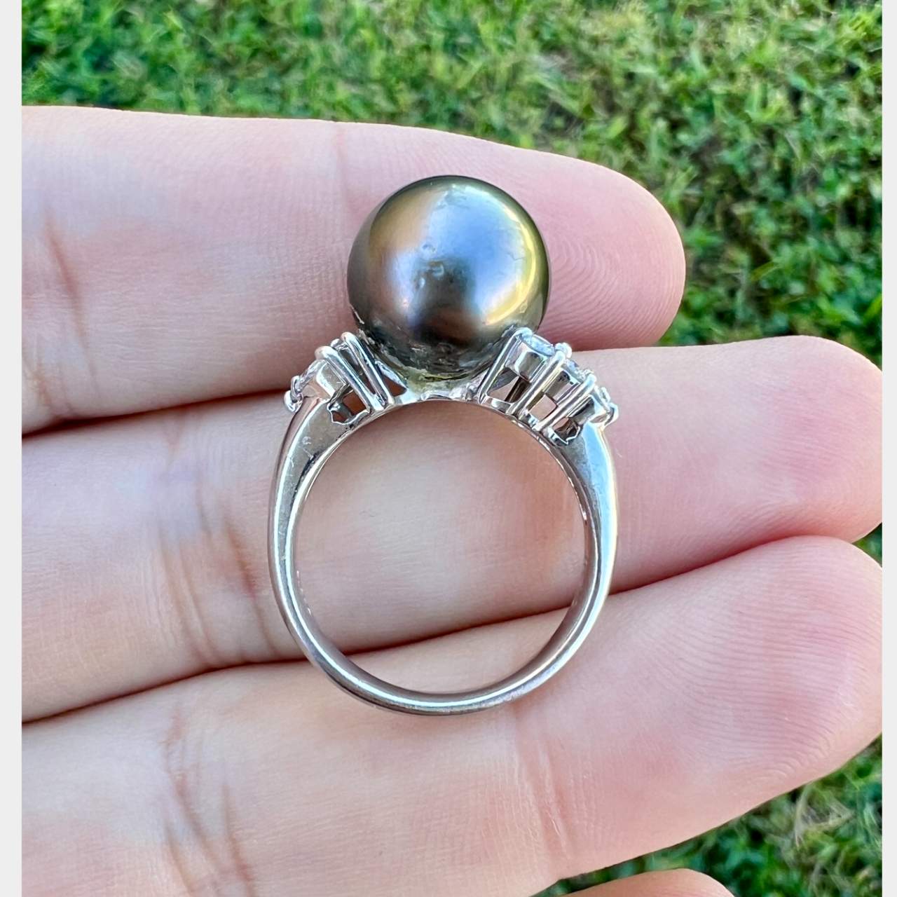 Platinum South Sea Pearl & Diamond RingWeighing 8.6 grams