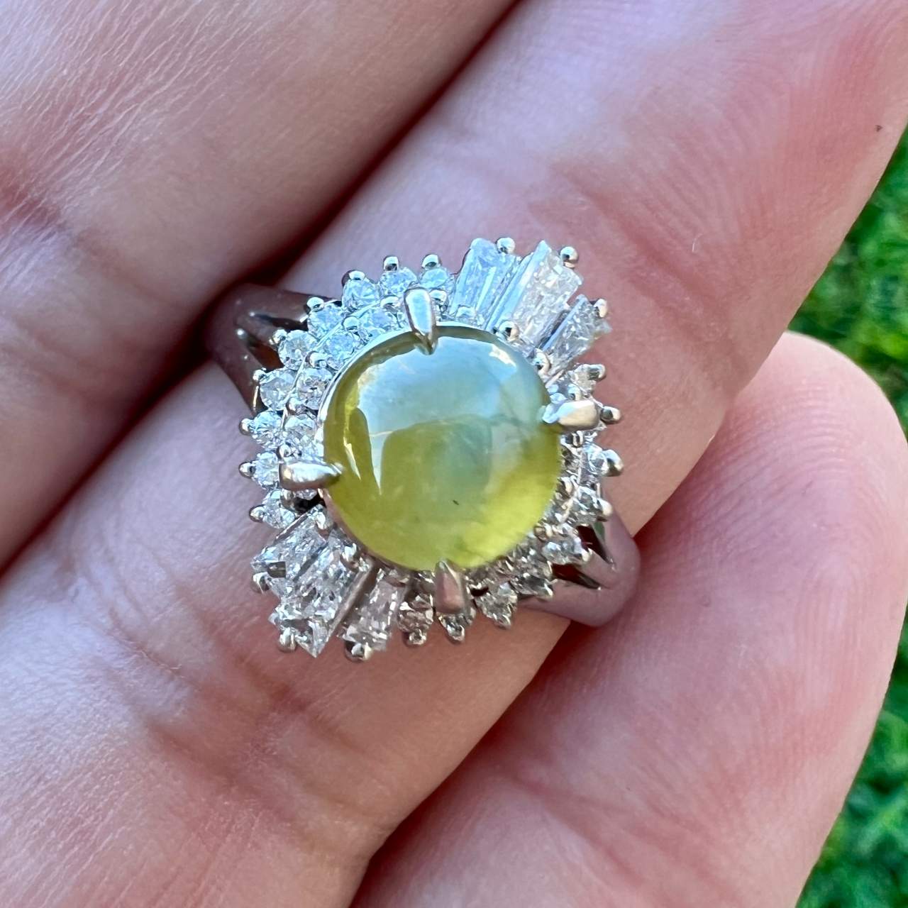 Platinum Cats Eye Chrysoberyl and Diamond RingWeighing 6.3 grams